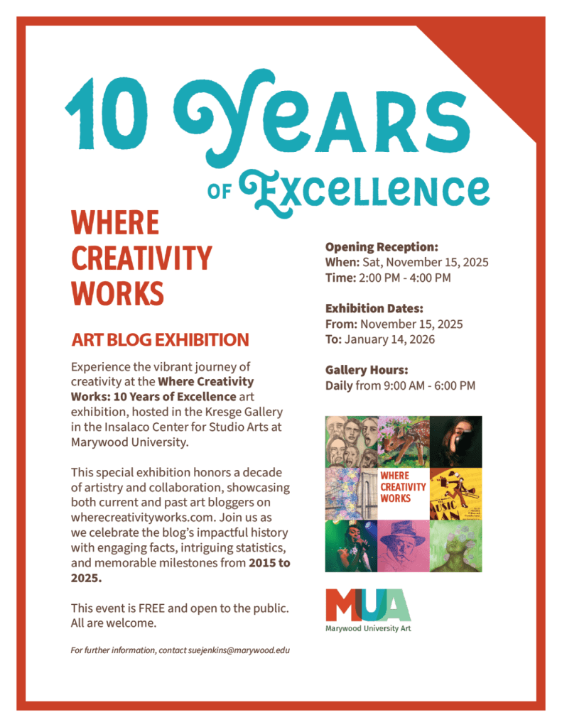 As the WhereCreativityWorks.com creator and editor-in-chief, I’ve had the incredible and unique privilege of guiding and witnessing this remarkable journey where budding art majors develop their creative voice and share their unique perspectives studying art at Marywood University in Scranton, Pennsylvania, USA.