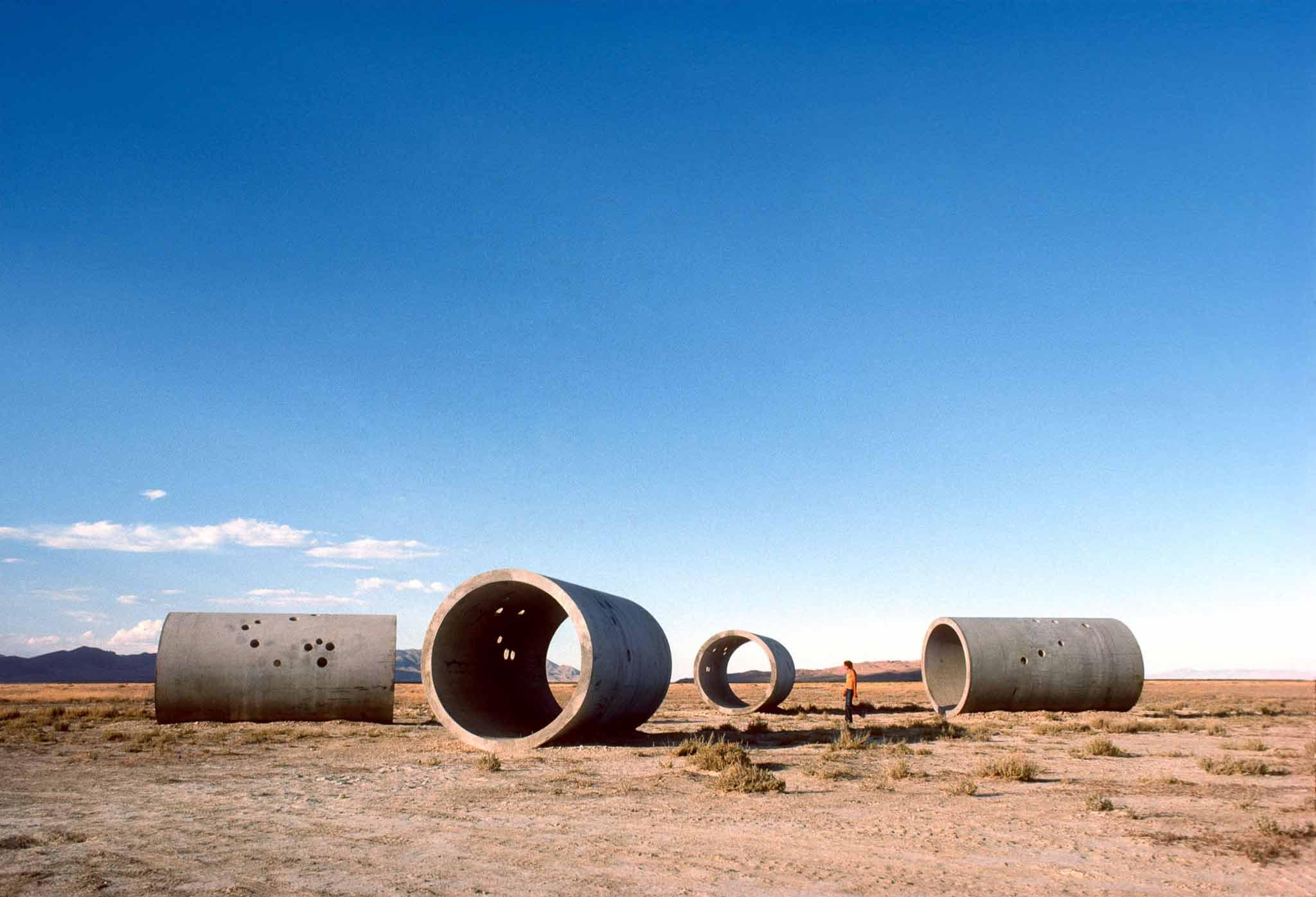 Another piece of land art I was taught about was Sun Tunnels by Nancy Holt. Once again the site was specific but the materials were not taken from the site. Instead, there are multiple concrete tubes with holes drilled in them, placed in the Utah desert that capture different intensities of light through the day. I think both works have the element of interaction. Spiral Jetty is more an interaction with the rise and fall of the lake’s water while Sun Tunnels is more interactive with the viewer as they step through, or stand in the tunnels.
