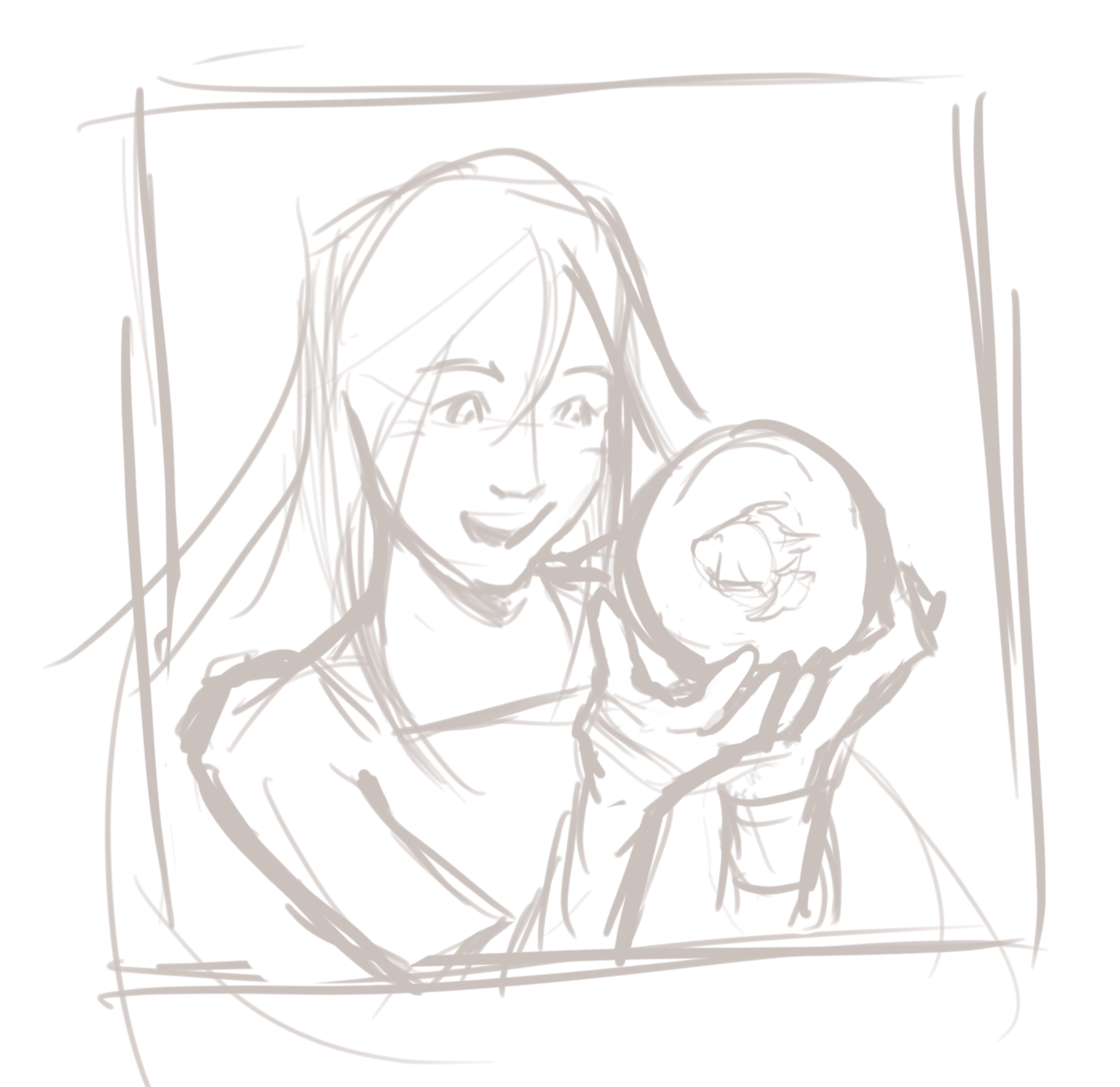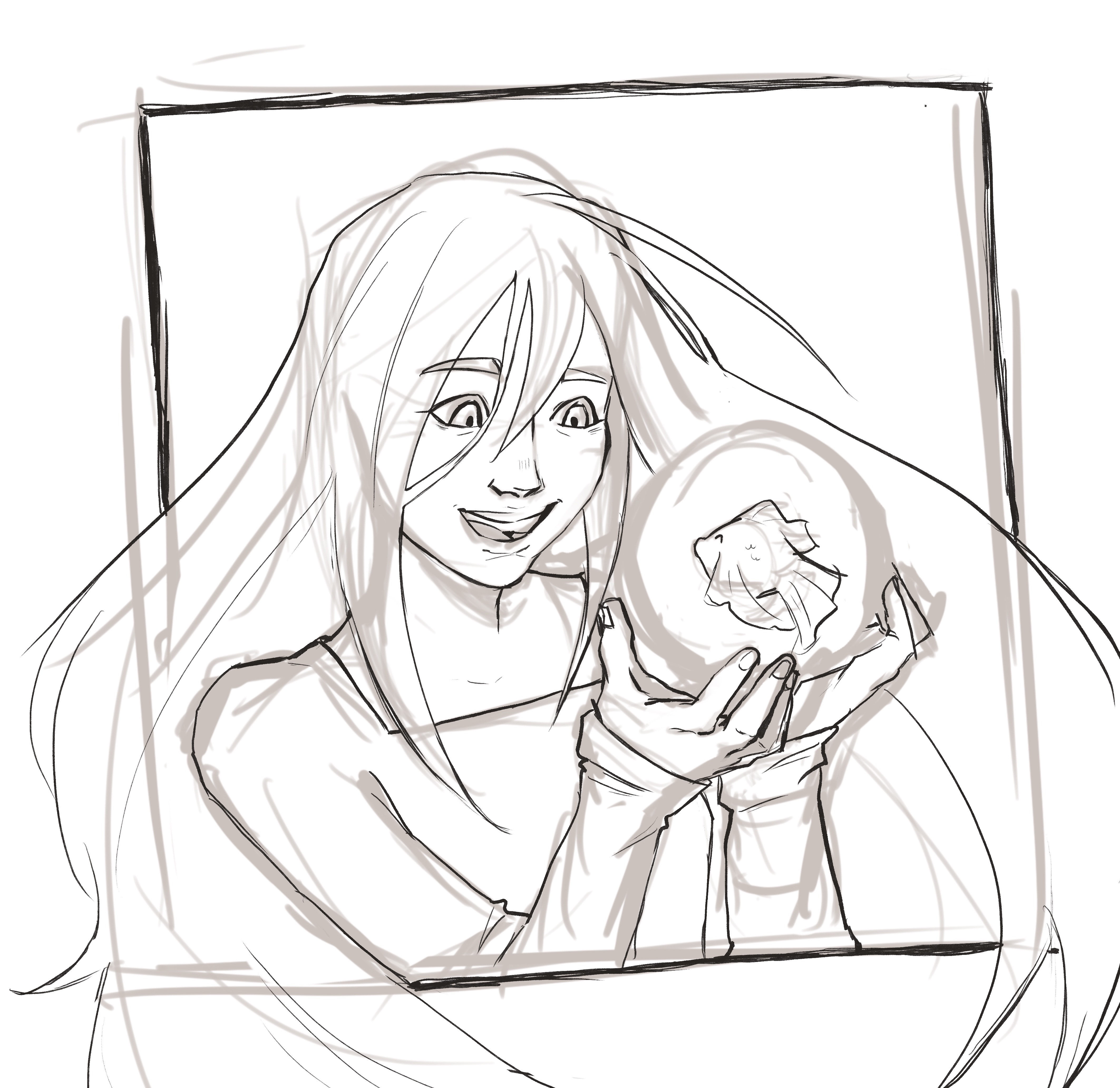 For the subject matter, I chose to go with a character of mine talking to her fish buddy. I tend to keep my sketches looser if I intend to do a layer that is dedicated to line art because I usually tend to make my sketch layer act as line art after I clean it up.
