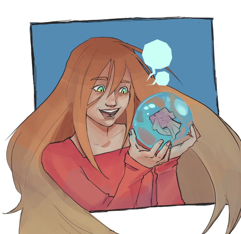 The base colors! I went for corals and oranges on the girl and fish so they pop out from all the blue of the background and the bubble surrounding the fish.