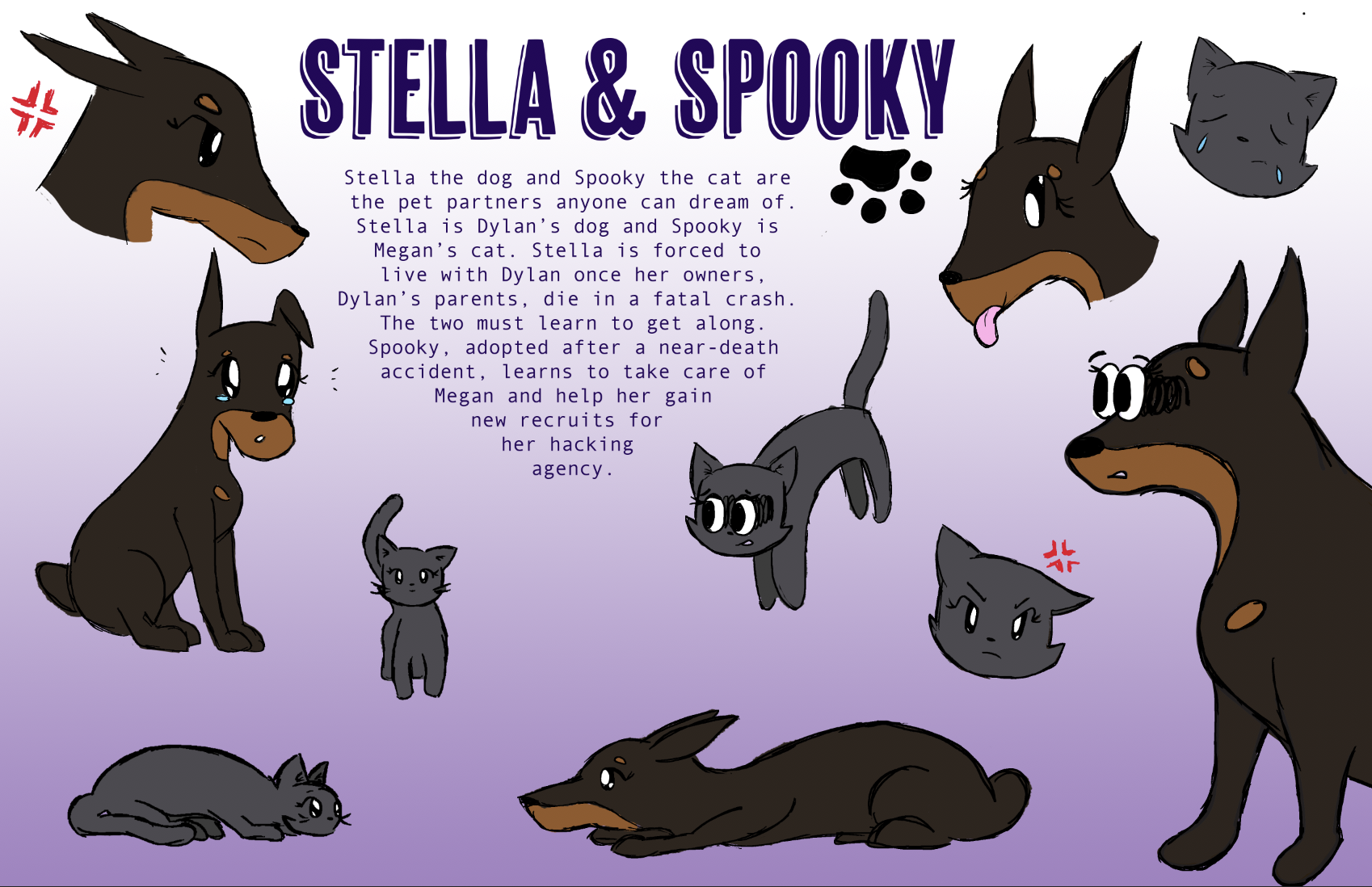This class was definitely difficult, but it encouraged me to buy a drawing tablet (definitely needed) and made me continue with the same characters for a stretch of a few months, so I was able to fully develop them!