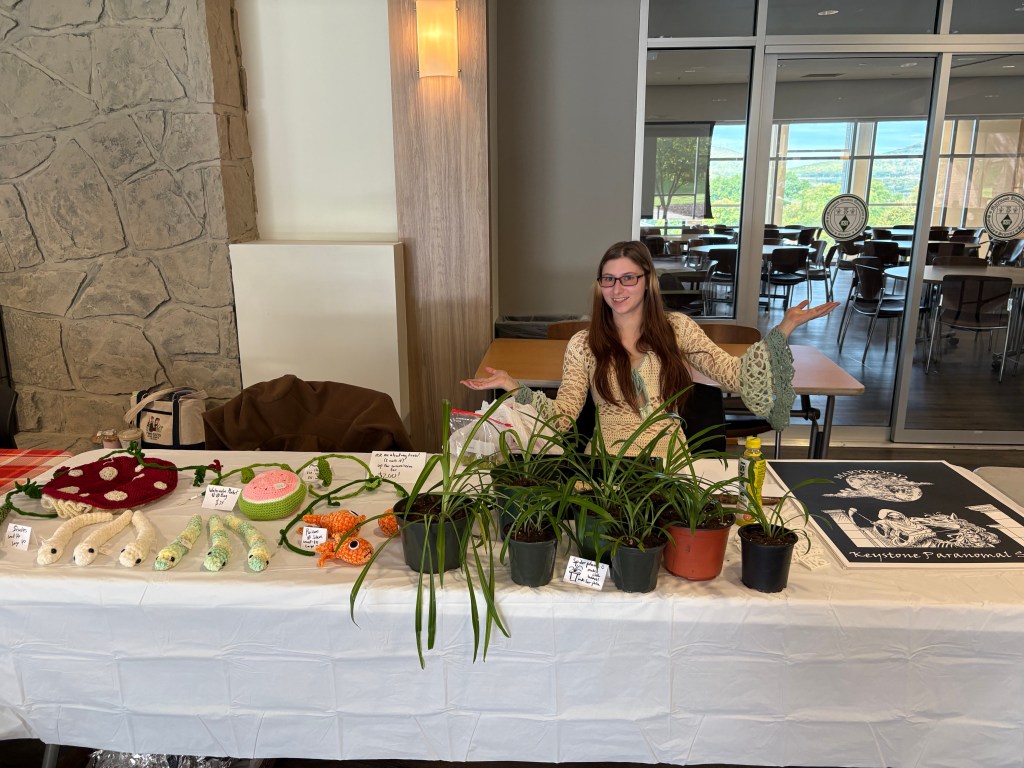 I sold a few different categories of products at the craft fair. I, of course, sold my crochet projects, but I also sold some spider plants, and some Keystone Paranormal Society club merch, because hey… you never know. I had two bigger crochet items, three phone chargers, and then many little friends. I also tend to wear my crochet dress in case anyone were to want to commission me for one. This craft fair went better than my first one, since the first one was at a church, which isn’t my prime demographic. People my age tend to be my audience. That isn’t really a surprise.