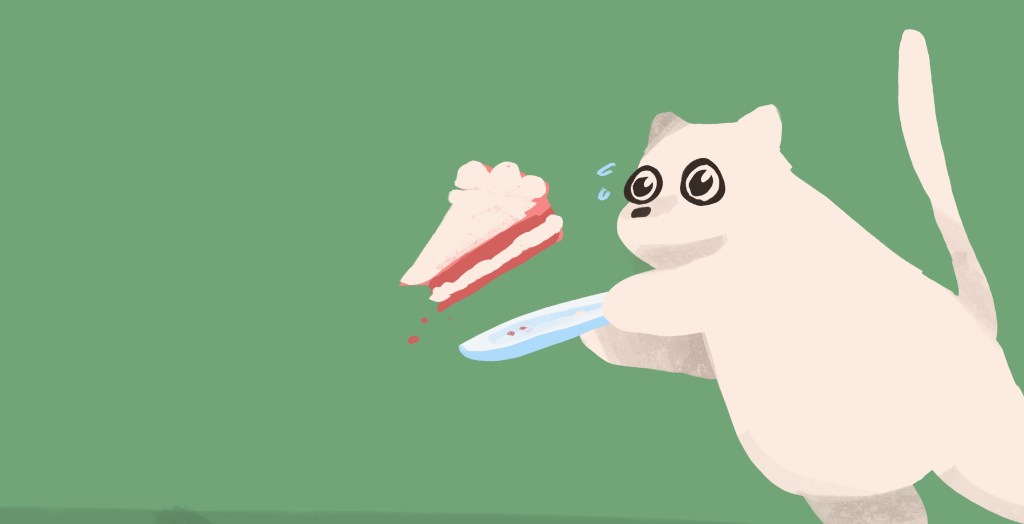In July, I had drawn this silly little bear/cat critter that was inspired by me almost dropping a cake slice because I tripped over air.