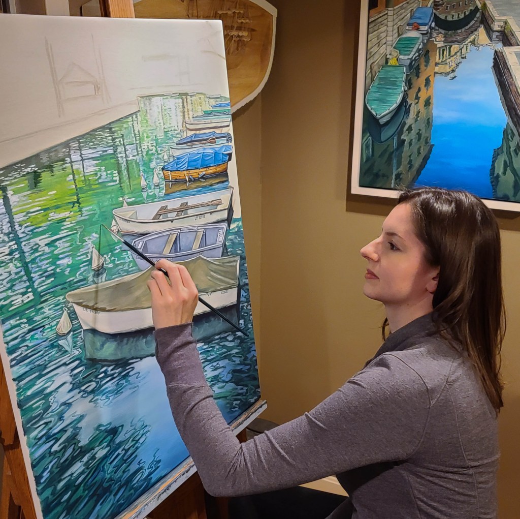 The Art department at Marywood is so well balanced and skilled. Every single professor offers a unique perspective. I came to Marywood initially with an interest in art but with an amateur level of understanding. Through my education I learned how to compose a photo/painting, what makes an image successful, proper perspective, contrast, color mixing and so forth. They really encouraged and pushed me to reach my full potential. I often think about how I was taught and utilize those techniques with my current art students. Without Marywood I also would not have connected with SACI, where I studied abroad in Florence, Italy. Those couple of semesters abroad also had a tremendous impact on my work, such as my water reflection paintings that were inspired by Venice.
