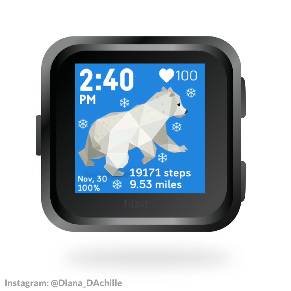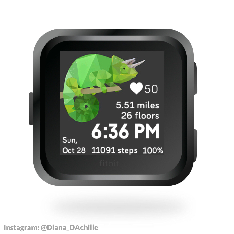 My newest project and passion has been designing and coding clock faces for Fitbit’s smart watches; Fitbit Versa and Ionic. The code I developed for these clock faces pulls information from the Fitbit users profile to display on the clock face. This includes the users heart rate, distance (km or miles depending on users setting), steps, time (12 and 24hr), floors completed and battery percentage. However, each animal clock face displays the stats a bit different. You can browse all of animal clock faces at, www.animalclockfaces.com.