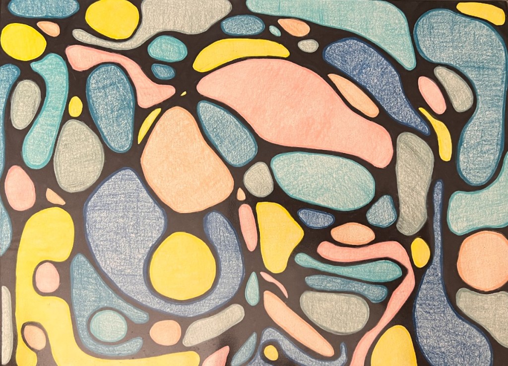 Hi everyone! I hope you’re all doing well! For this week’s blog post, I want to talk about an exercise I’ve been doing a lot this summer. I didn’t come up with this, and I’m sure many of you have done it before. I’m not aware of a specific name or purpose, but I do this exercise in various ways; most recently, I’ve been using it to relax and analyze my thoughts. This activity consists of scribbling, rounding out intersecting lines to create organic shapes, and filling those shapes in. I’ll show you some examples I’ve done and walk you through the process if you’ve never done it before.