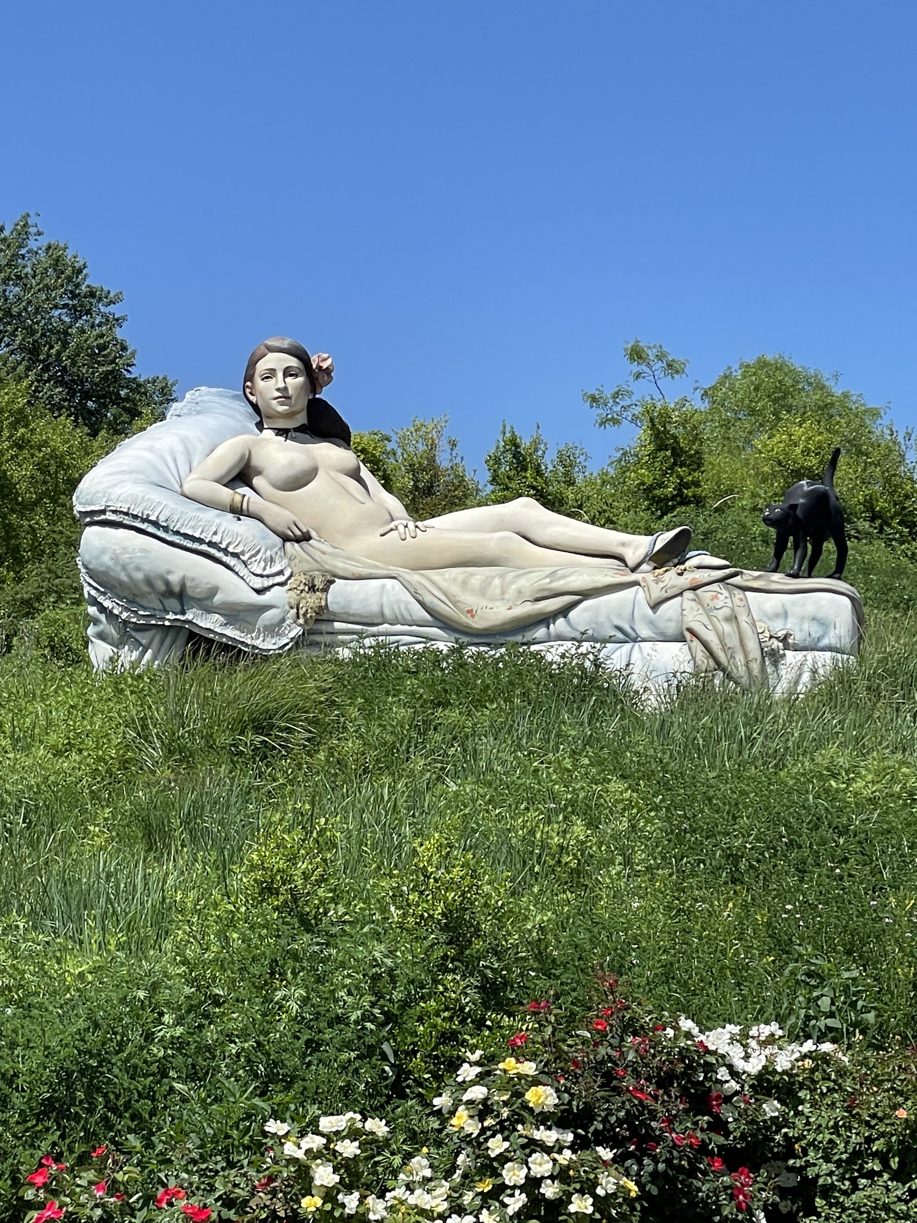 I was initially interested in this site because of its art historical homages, which were so awe-inspiring. I am a huge fan of monumental sculpture, so seeing pieces like Manet’s Olympia or Matisse’s Dance in gigantic scale was incredible. There were also works like Dejeuner Sur l’Herbe and Monet’s Water Lily Pond which used the environment to accurately depict the original pieces, making it a surreal step into the piece we’ve seen so many times.