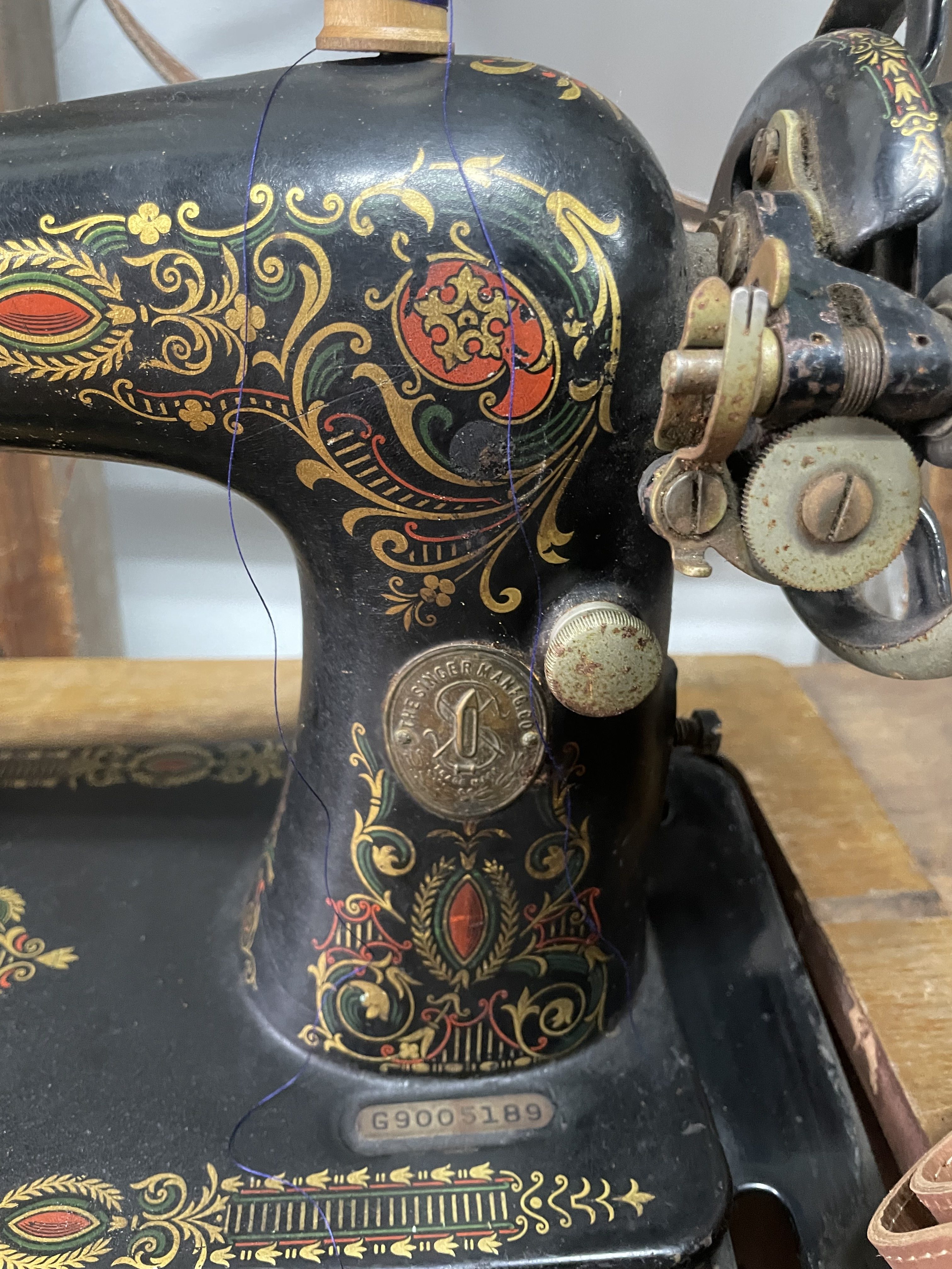 Thankfully, Singer had a great deal of recordkeeping that made it easy to identify the year this machine was manufactured. The well preserved serial number (and a handy chart from the International Sewing Machine Collectors’ Society) allowed me to definitively place this machine at the very end of 1910, making it 113 years old!
