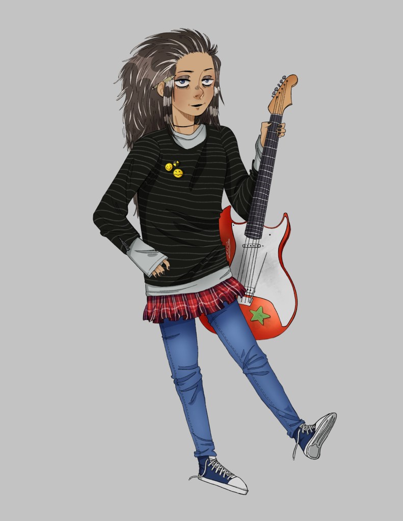 For one of the assignments, my class had to choose an animal character or one that was essentially anthropomorphic and then re-design it as a human. Naturally, all knowledge of anthropomorphic characters that I liked immediately left my head and it was a struggle to remember what ones I would feel inspired to use for this project. Then, I remembered that the movie Sing exists and I absolutely loved it when it first came out. Therefore, out of my list of characters to choose from, I picked Ash from Sing. I really liked the style of the character, and I thought that I could do some really cool things with her hair. She plays guitar, which is so cool for her character but not so cool for me because I struggle with drawing instruments.