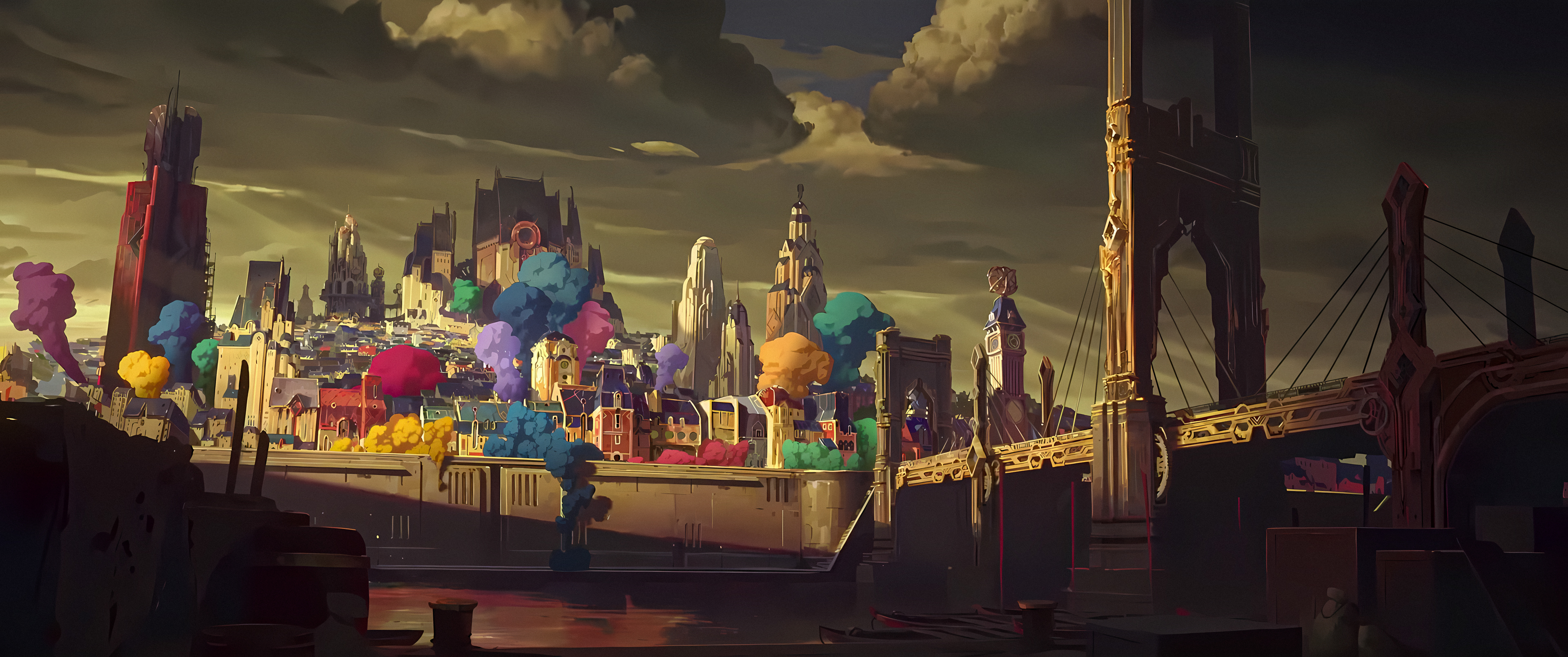 Piltover smoke scene: (https://www.reddit.com/r/wallpapers/comments/1faj3yx/4k_arcane_season_2_wallpapers/)
