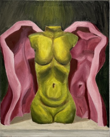 I completed Painting II this past year and I really expanded my skill in this class. When I look back on some of my paintings now I see that I really pulled inspiration from Expressionism and Fauvism which have always been two of my favorite styles. In my one painting, I painted another student’s sculpture that was being displayed in our art building and I tried to paint more intuitively and according to my feelings rather than reality. This resulted in me using bright, highlighting colors and more noticeable brush strokes. While my painting reflected the sculpture I was depicting, it also showed the feelings I had about the sculpture through the colors I added. Looking back I realize this reflects the style of fauvism which used unnatural and bold colors along with rough brush strokes to display emotion.