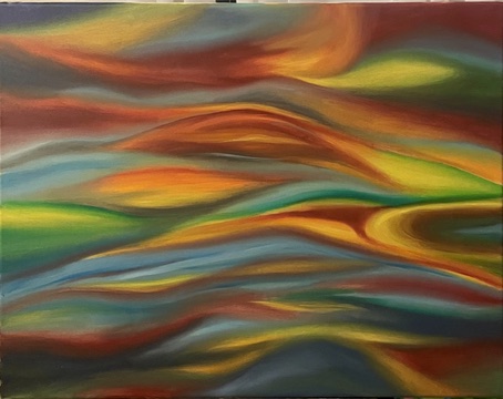 Another one of my paintings is an abstract colorscape which I believe pulls inspiration from Expressionism, particularly Edvard Munch’s “The Scream.” I wanted to continue painting using a more intuitive approach and decided to start painting with no plan and I ended up using most of the colors in my palette. Each stroke of paint I put on the canvas has a path and is in harmony with the other colors. The swirling lines and colors form a beautiful and emotional abstract piece. To me, it reminds me a lot of “The Scream” by Edvard Munch because of the same kind of swirling sky with bright colors that stirs emotions in the viewer.