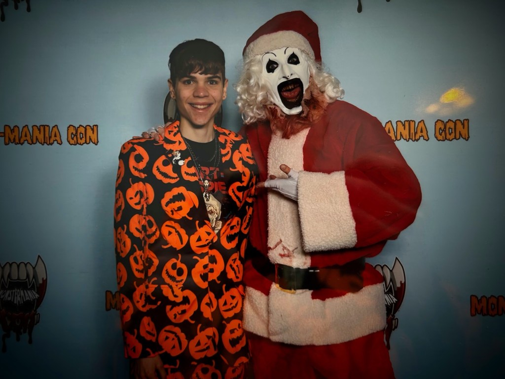 The main attention grabber for this convention in particular was the presence of the entire main cast of the hit indie horror franchise TERRIFIER. I am absolutely obsessed with this franchise in particular. The main icon is Art the demonic clown. Clowns are my favorite horror icons and I particularly like the personality of Art the most! However, what makes TERRIFIER stand out amongst the crowd of horror films is it’s immense gore.