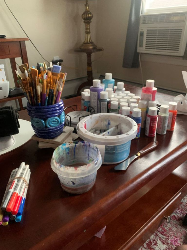 When I was pulling out all of my extra paints and canvases I remembered how much extra materials I have since the last time I painted not too long ago. My two friends also brought some of their materials as well since they are also artistic.
