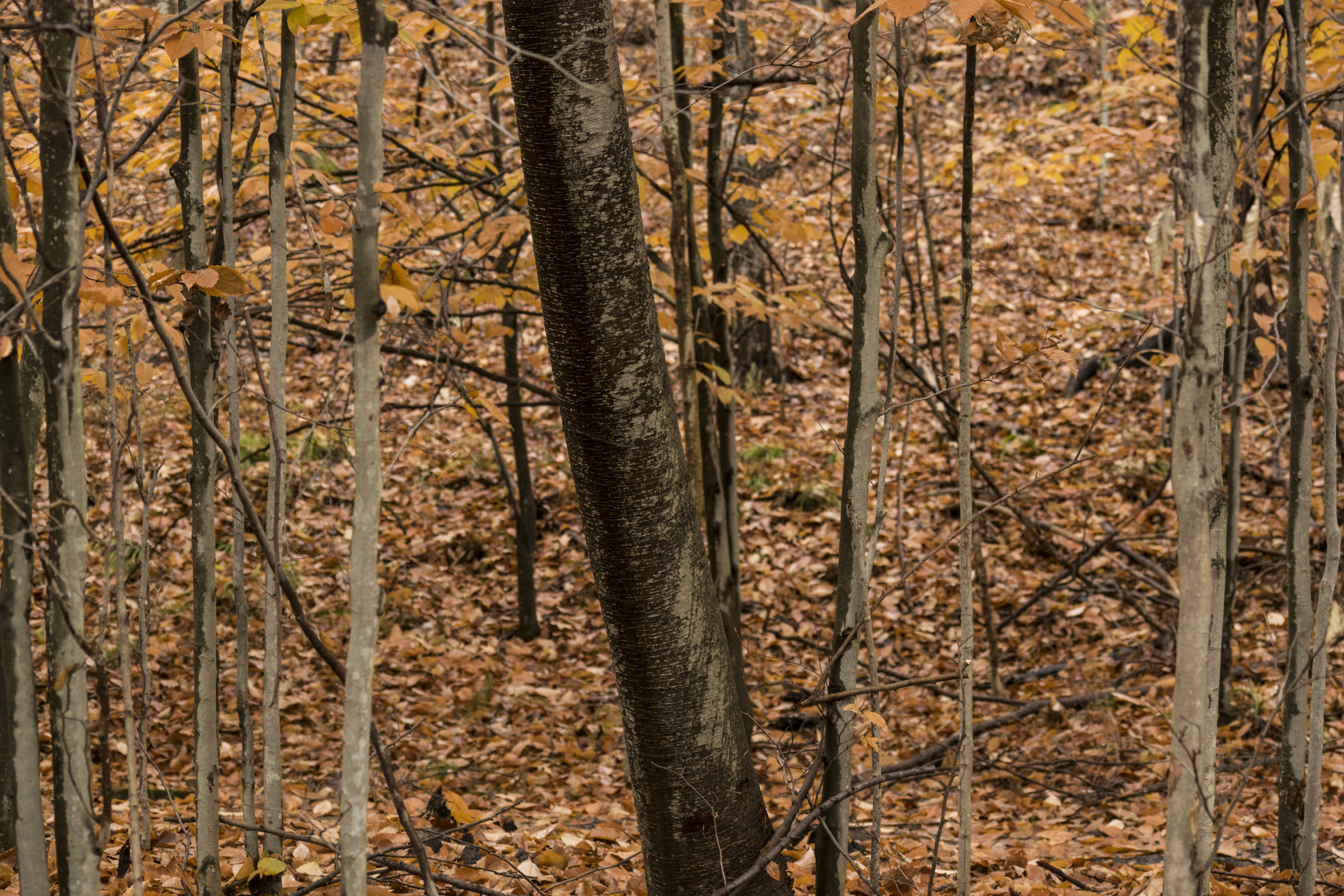 The conditions were not uncommon really in terms of lighting, an overcast day in fall, but the excellent light happened to coordinate fairly well with the peak moment in the trees’ evolution into their winter forms; where the distribution of leaves between the ground and the trees themselves is somewhat even and the area becomes engulfed in warm tones.
