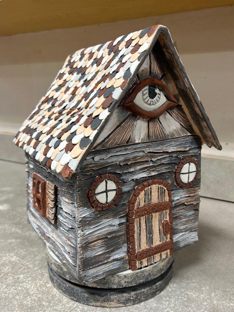 Glazing this piece was a long process, it took me about 8 hours. I did it in 2 days. The first day I did everything but the roof and the last day the roof was all I did. I loved the process, when I’m doing ceramics it barely feels like work! That’s the update! I will have one more update of the finished hut!