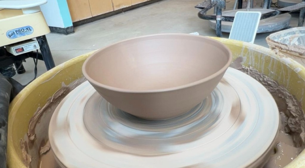 As for my warming up on the wheel, I’ve made some things I’m pretty proud of already! I have two small vases, two larger vases, and a decent-sized bowl. I only remembered to take pictures of two of them, but I can’t wait to sketch out some glazing ideas for each of them soon. I was surprised at how quickly I was able to get back into the groove of throwing. I thought surely my excitement would interfere with my muscle memory, or I would forget some steps, but that wasn’t the case at all! Of course, I still have a lot of improving to do, but I’m just happy I get to continue right where I left off. Here are the pictures I remembered to take:
