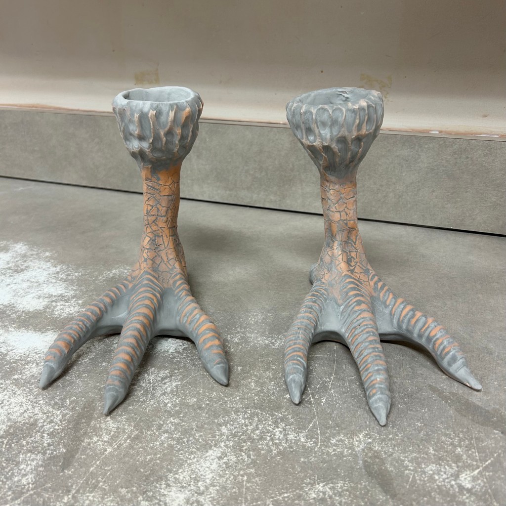Another thing I’m excited to dive into is making smaller Baba Yaga Huts. I want the windows to be open and the roof to be removable to that incense or candles can be placed in them, as well as any other objects. Working smaller also gives me the opportunity to make design variations and make each of them unique. The biggest challenge will be finding a way to make the base of the house and the feet quickly and effectively so that I can spend more time on the designs and small details. I see more mold making in my future.