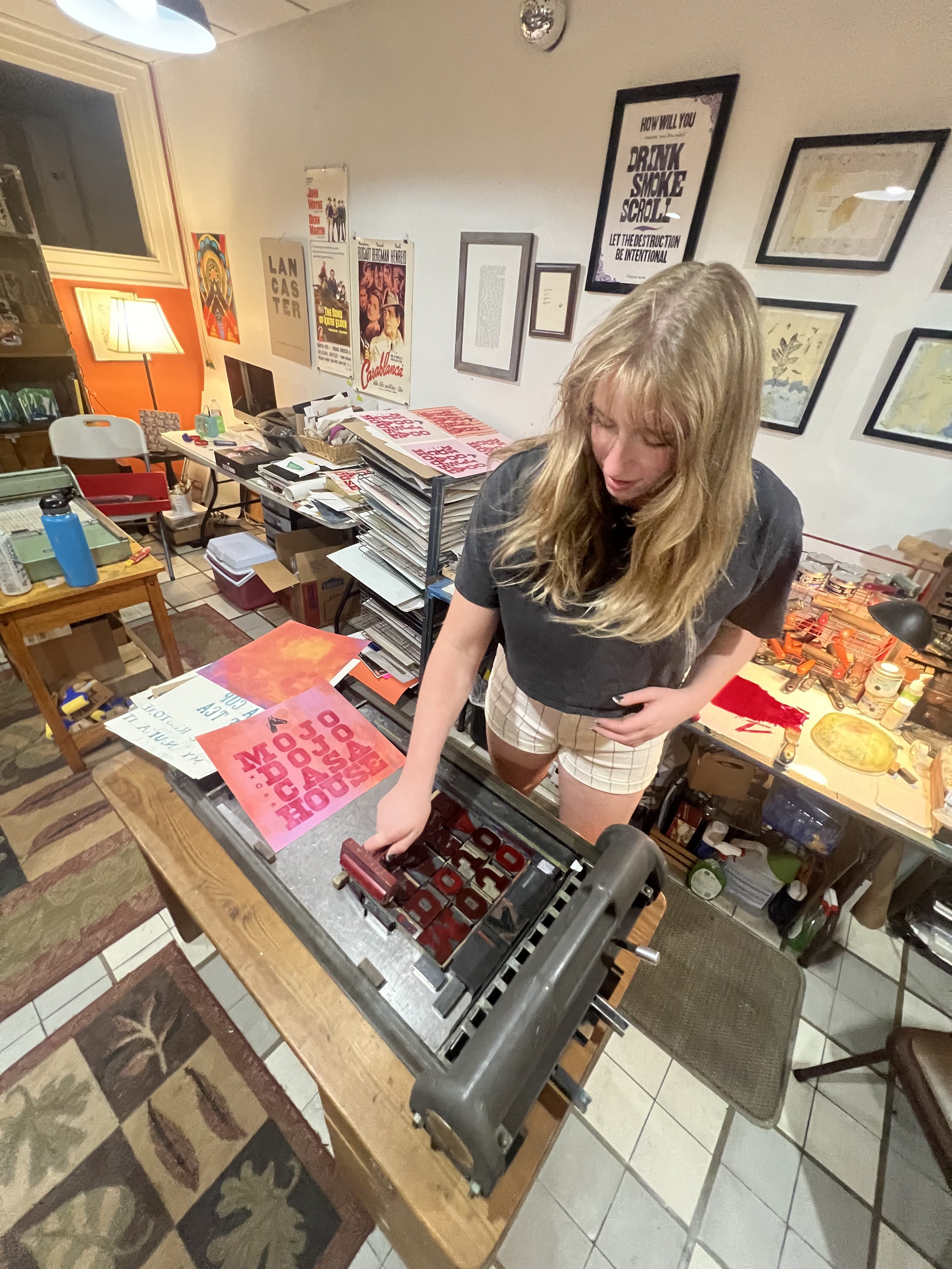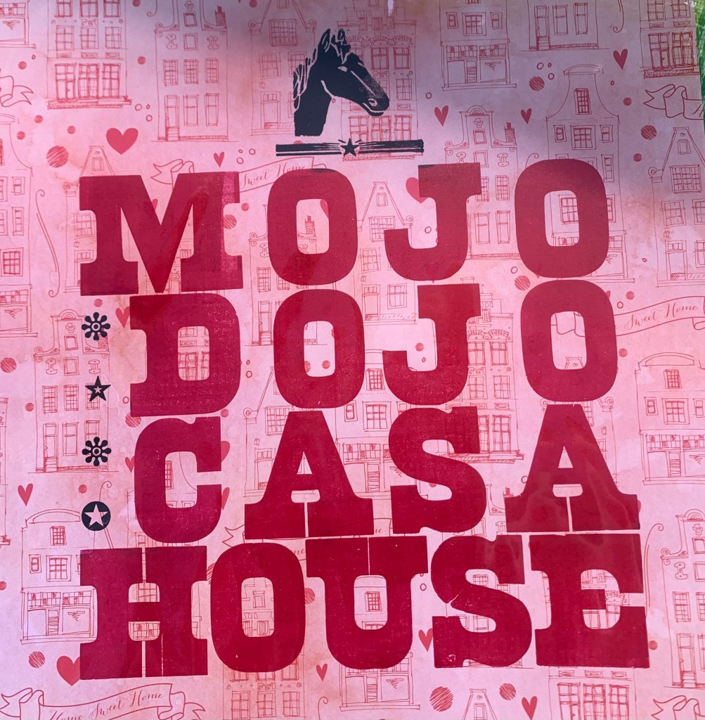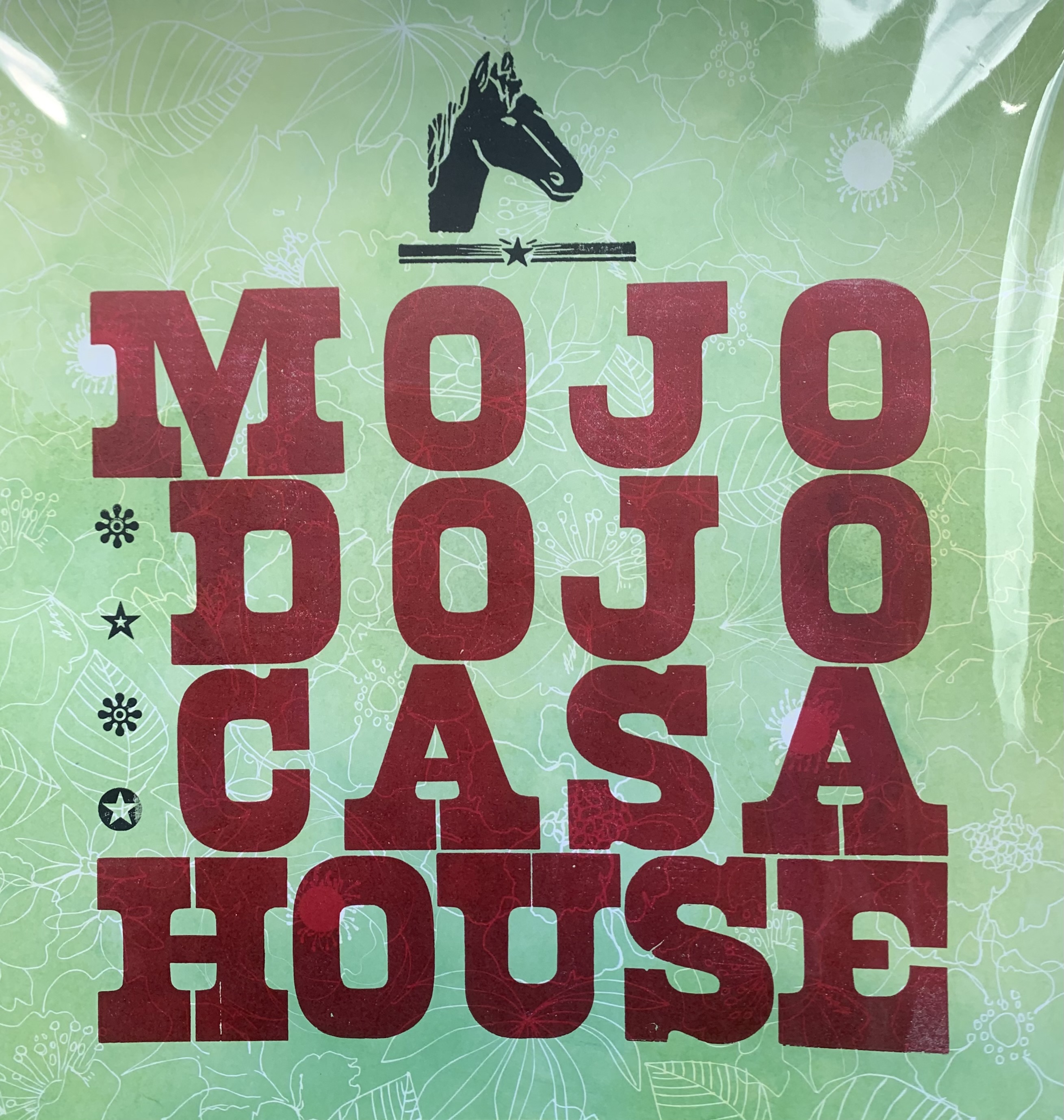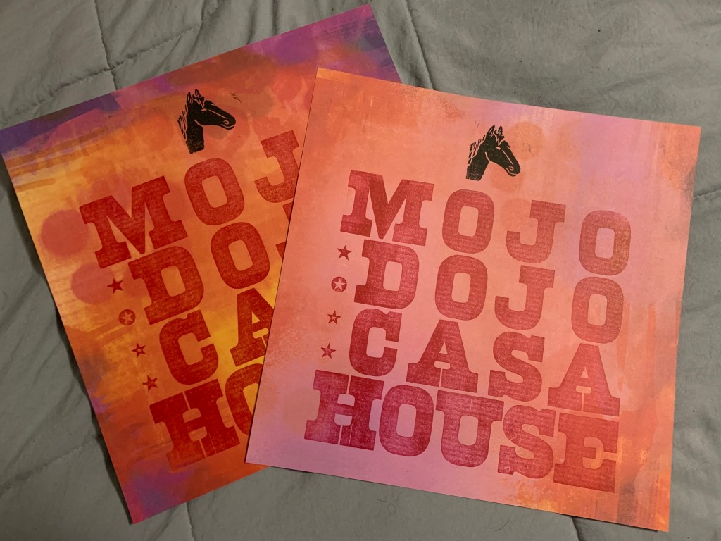 The chosen wood type gives a slight old western feel and also a spunky pop feel! It is a thick slab serif font. The phrase, “Mojo Dojo Casa House” had originated as a quote from Ken within the Barbie movie. The addition of the horse and stars was added to the design to break up the type and add a symbolic visual element from the movie.