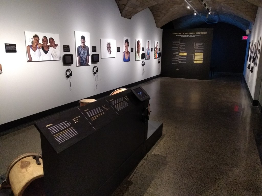 The Penn Museum is a really great place to visit (their student price is $10) and there’s a wide variety of artifacts on display for you to consider and look at. My personal favorite has always been the Egyptian exhibit (with the Asian works following as a close second) but this time around I stumbled upon an exhibit I never had the chance to see my freshman year. It’s called “Bearing Witness: Four Days in West Kingston” and is about the Tivoli Incursion. Penn’s website simply explains that ” In May 2010, the “Tivoli Incursion,” a standoff between Jamaican security forces and a local drug trafficker and community leader wanted for extradition by the United States government, resulted in the death of at least 75 civilians in West Kingston on the island of Jamaica”. Through the use of charts, personal interviews with those directly affected/photographs of the interviewees, installations, and a quick 8-minute documentary, the exhibit aims at bringing light to this event (which I had never even heard about), and calling for justice for those affected.