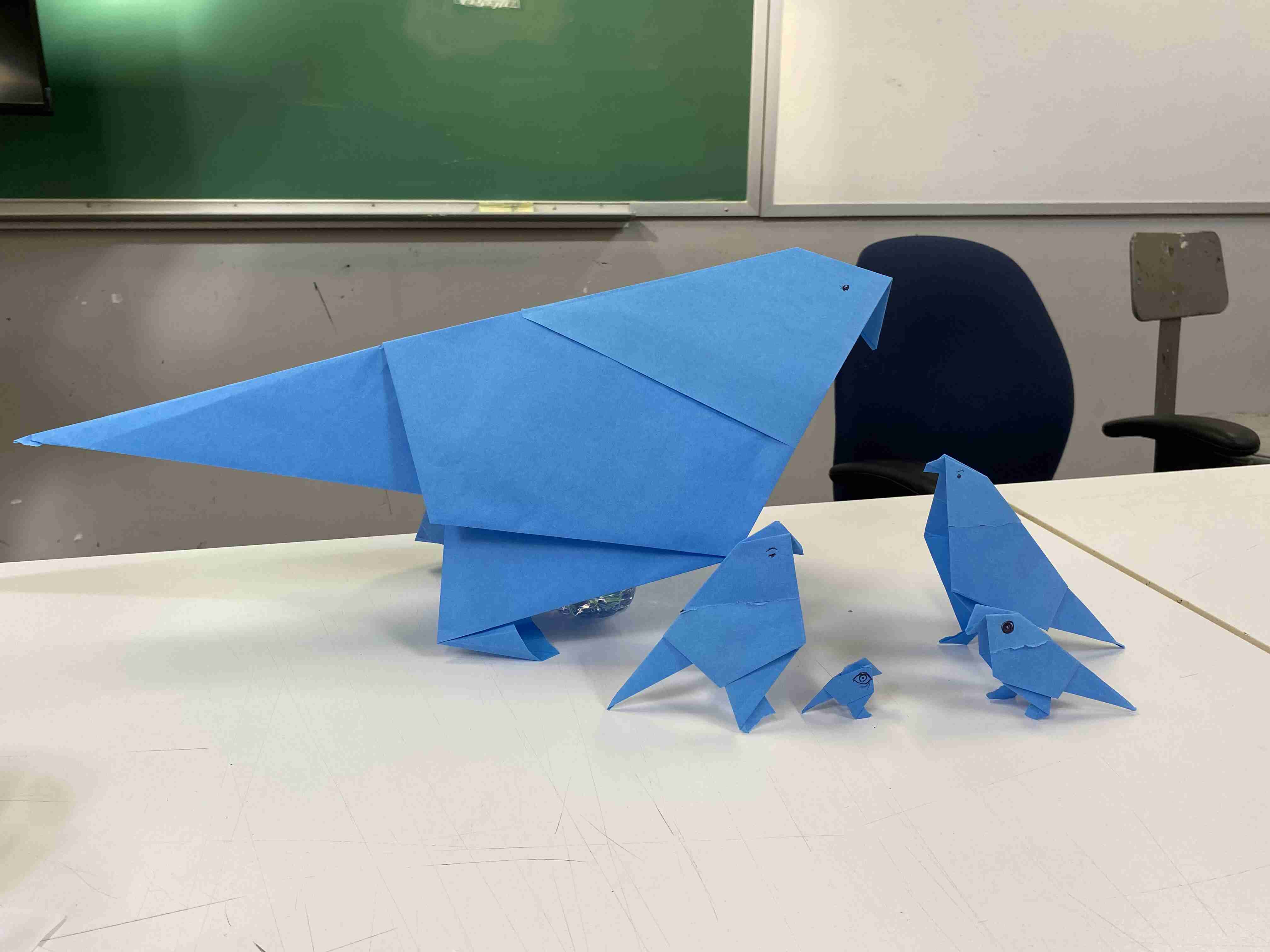 In my 3D Design class, part of my Foundation Year art classes at Marywood, we recently created some small origami animals, then chose our favorite one to scale up, and then scaled it up AGAIN, but this time in cardboard!