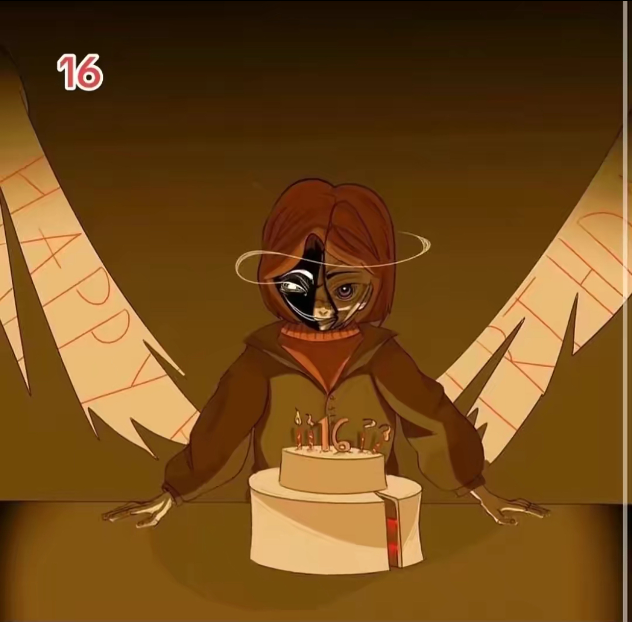 At seventeen I had an idea of what I was doing, a small idea, but still, an idea. I didn’t know what composition was anymore this year than last year- I genuinely thought composition meant drawing shapes. Shoutout to all completely self taught artists that just don’t look anything up ever. This year I had an idea of where I wanted my art to go. I still wasn’t drawing myself outside of this yearly tradition, and this was the year I had begun trying to draw more anatomically correct figures rather than super stylized ones. Still sticking with line art, but going a lot lighter with the colors. I think seventeen was where my scribbling in lines as a “background” started. Not much to say about this year, it was kind of done as an after thought.