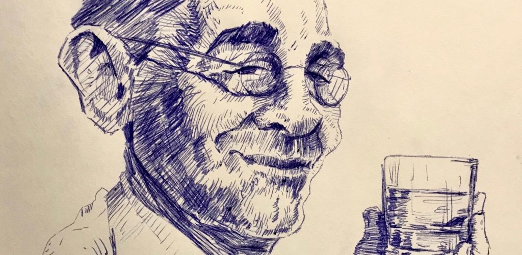 This week’s illustrations are in blue pen; my black pen ran out of ink. Although I do like the look of the black, the blue does add a unique glow to the drawings. I do notice that the ink has a smoother feel and lies on the paper much better than the black ink pen. Below are three caricatures that I completed. I will continue with the blue ink for the rest of the week and see what else I can do.
