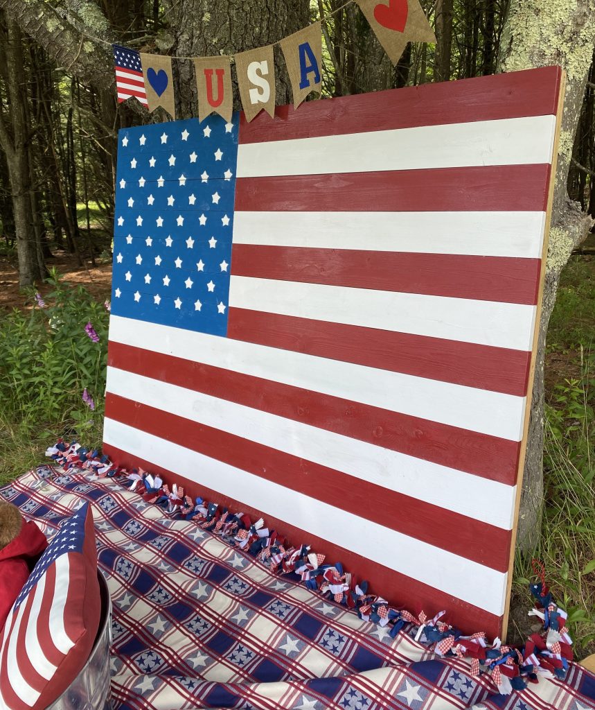 After this the flag was finally finished, and it was able to be used for 4th of July photos. Here is a photo of my final backdrop using the flag that we made! It was definitely a large project, but in the end it turned out to be perfect for how we planned to use it!