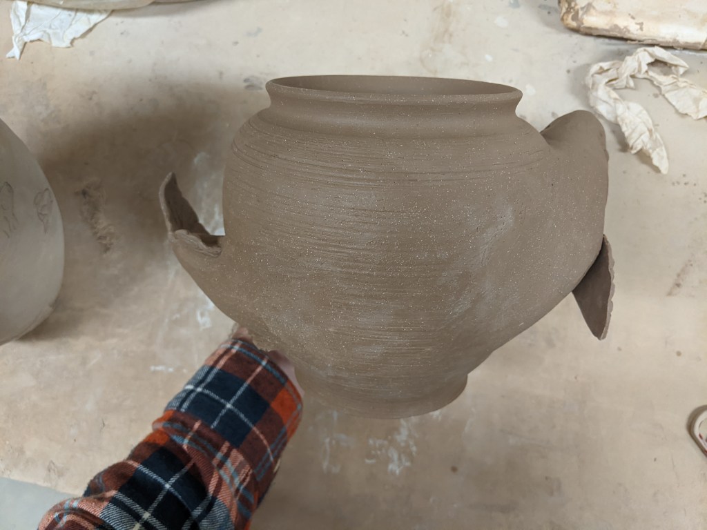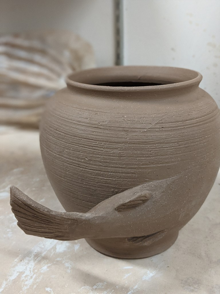 The ‘trout jar’ is coming along quite nice. The form is basically complete and now is the stressful part of drying it out. Checking every day almost expecting to see a massive crack in the pot but crossing your fingers that there isn’t. Having faith in your throwing and trusting yourself takes time but its very valuable.