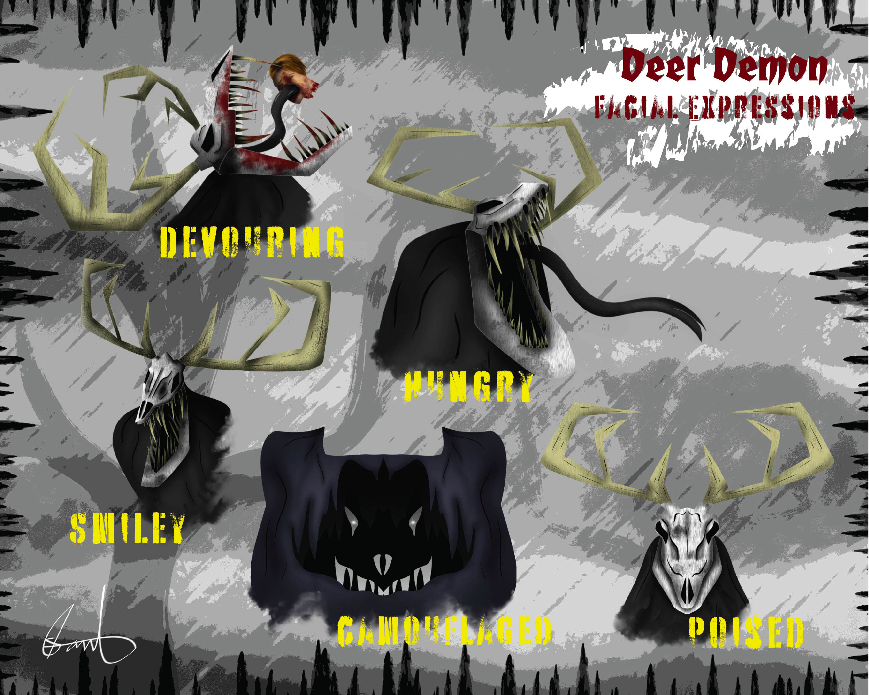 In a nutshell, my story is told through a single-play horror video game. The main protagonists are Bruce and his partner Buster. A supernatural being known as the DEER DEMON took over their small town of Chestnut. With the DEER DEMON’s herd of Dead Doe, he devours the souls of humans and leaves their decapitated corpses. That said, it is up to Bruce and Buster to not only save their town of Chestnut, but also prevent the demonic spread of the DEER DEMON’S power and avenge the death of Bruce’s mother.