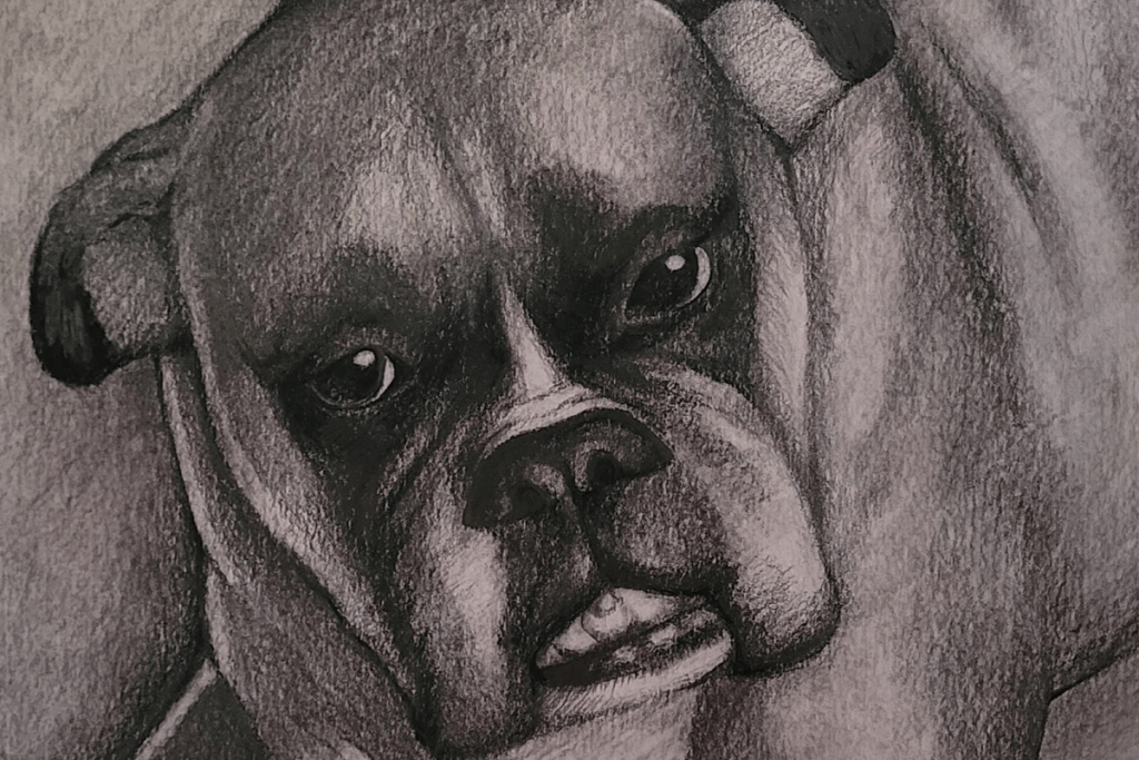 The first present I focused on was a portrait of my friend’s dog who passed away earlier this year. His name was Dunkin and he was such a cutie. He would always greet house guests and give them huge kissies. I chose to mimic this photo because he looks so adorable. I completed it using graphite/pencil. I left most of my art supplies at school over break so I had limited options. But it turned out okay!