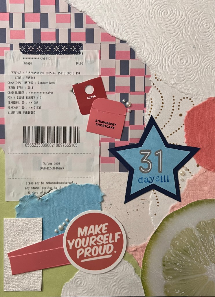 Hi everyone! I hope you’re all doing well and enjoying your week. For this week’s blog post, I’m going to show you my first attempt at a college journaling page. Over the years, I’ve collected a wide range of collage materials because, honestly, there are an unlimited number of items to use in a collage. For this specific page, I wanted to focus on recent aspects of my life, such as activities, purchases, things I’m looking forward to, and any other recent ideas. Let me show you some examples of materials I used and the tools I used to complete the collage.