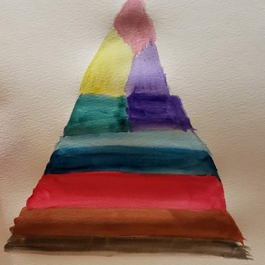 I chose to do the Color Mood Pyramid technique. It is done by drawing a triangle and then using paint to fill it in, with negative moods towards the bottom and positive moods towards the top or vice versa. I chose the former version.