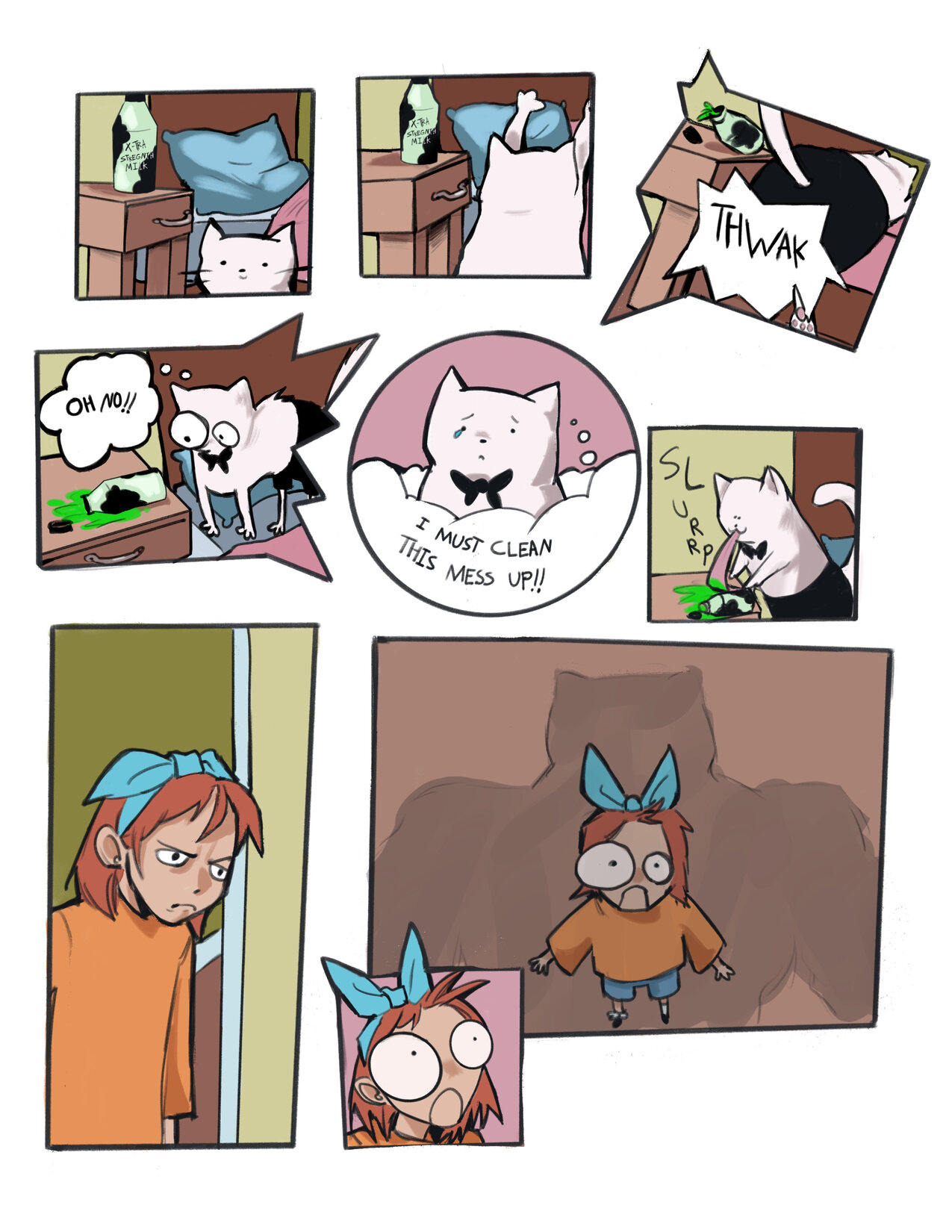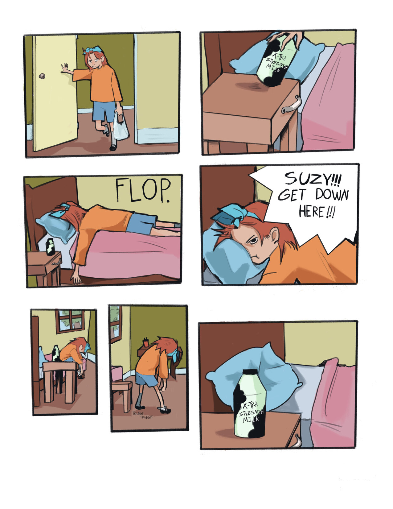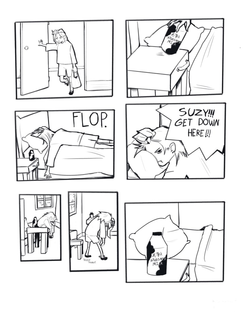 Making a comic is no piece of cake, but seeing the final product is super rewarding! In my General Illustration class this semester, we are currently working on a comic and mine revolves around our protagonist Suzy, her cat Robert, and a rotten radioactive protein shake.