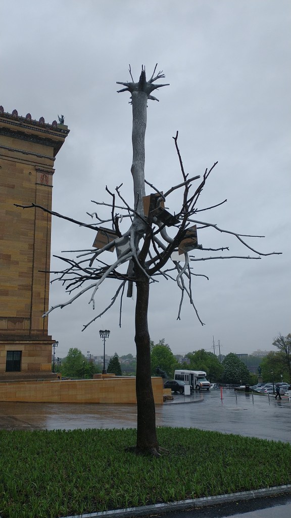 To close this off, I’d like to share a few sculptures that I saw in passing that I can’t not share. The first image shows cute porcelain flower sellers that I believe are an amazing concept for a flower vase. The second is some kind of hanging decoration from a period room. I can’t find out which, but this moosemaidman (as I like to call him) was one of the highlights of my discoveries. Lastly is this strange tree sculpture that the museum had displayed outside. The only article I could find on it is behind a paywall, but with some digging, I was able to find that the title is Identita or “Identity” by the artist Giuseppe Penone.