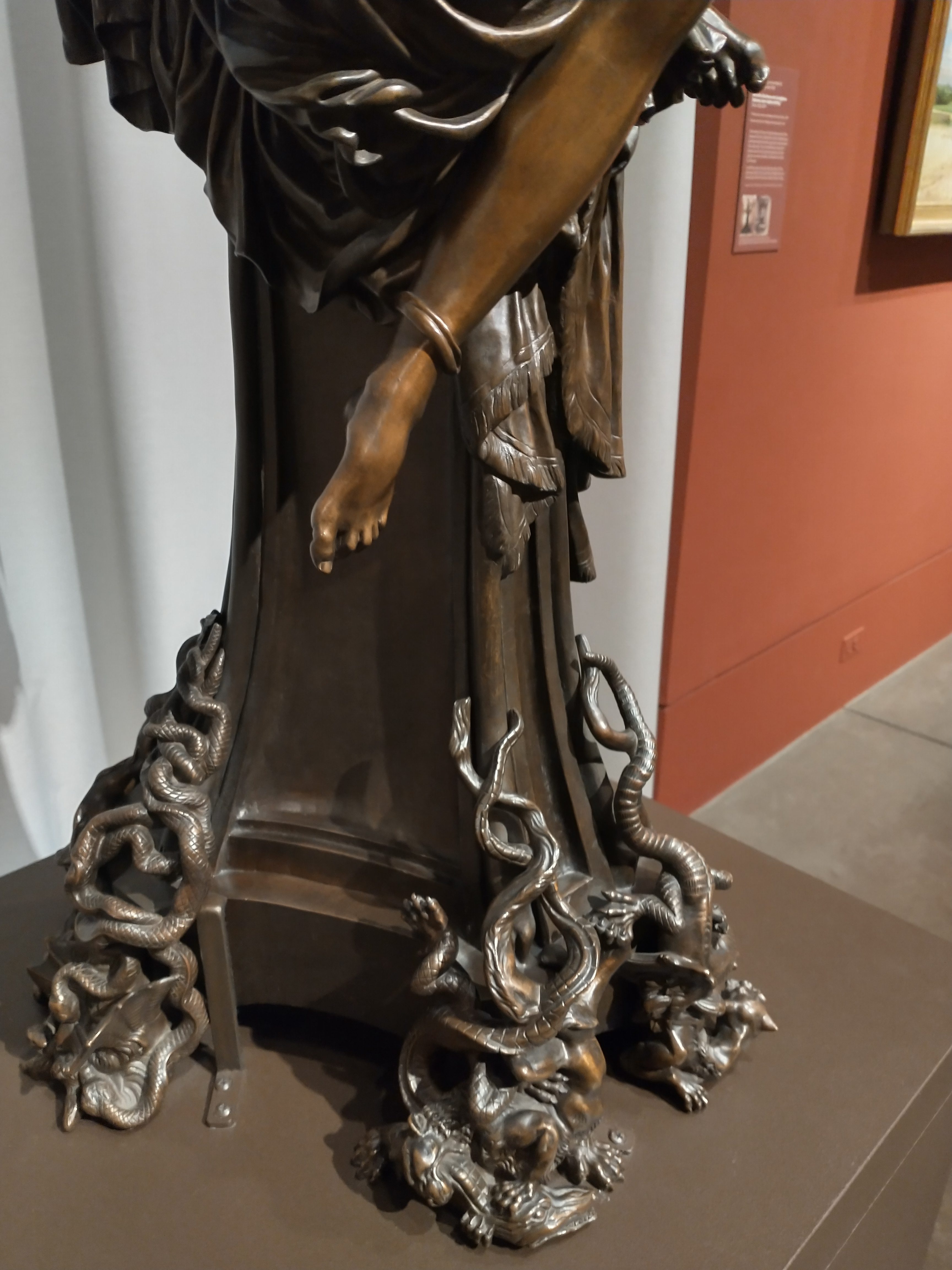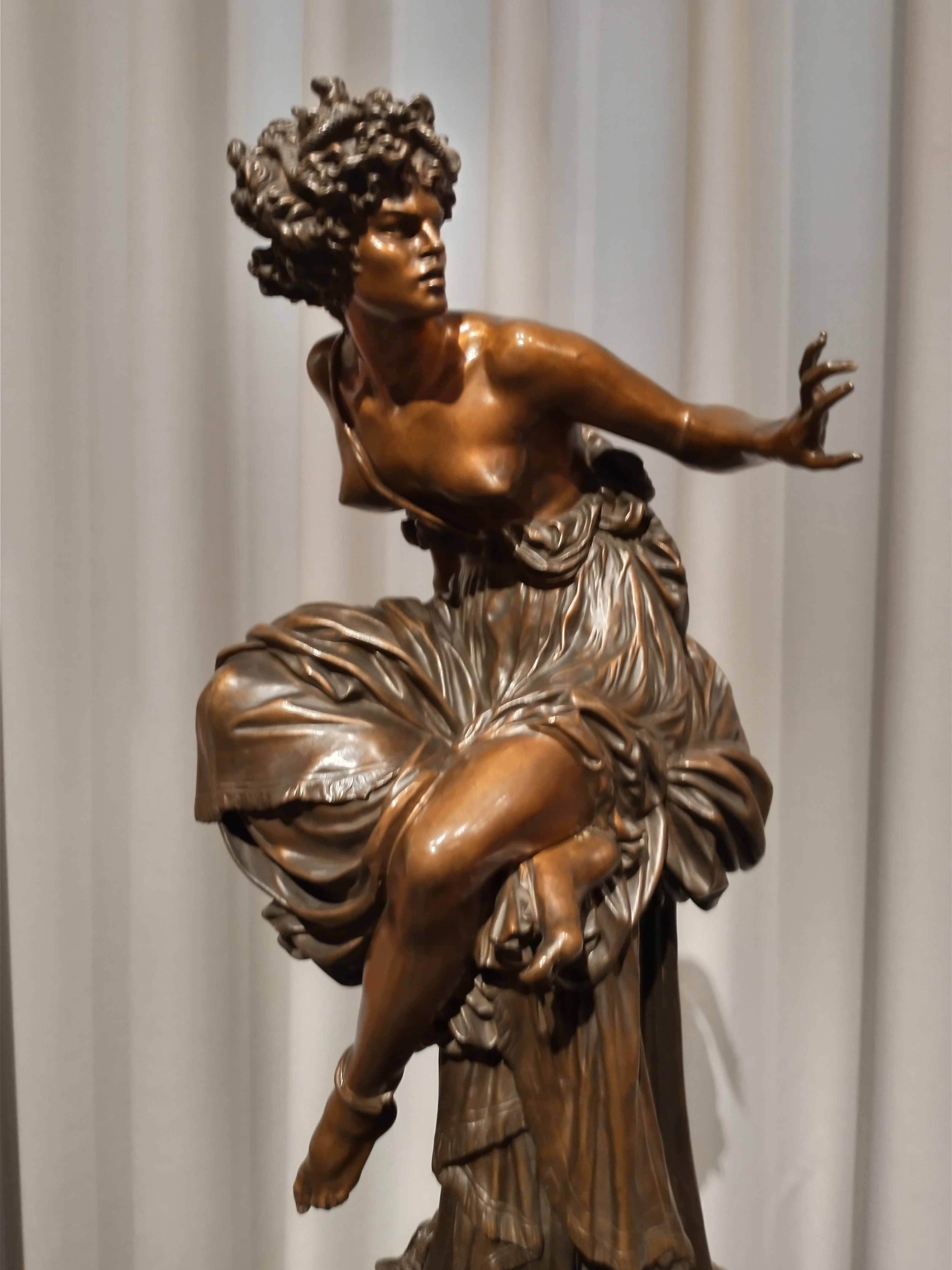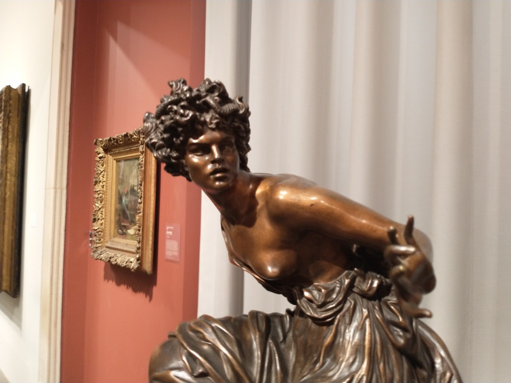 Next, we have the Pythian Sibyl made by Marcello (Duchesse de Castiglione-Colonna, born Adèle d’Affry) after 1869-1870. Made of bronze and sitting at 31 1/2 inches, she is amazing to look at. Her form is so elegant you can’t help but stare. The artist, being female, used a more masculine name to get recognized. She even used her own body to help model this piece.