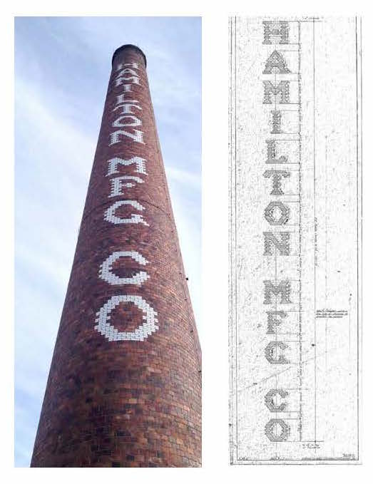 Welsh visited the Hamilton Wood Type & Printing Museum in Wisconsin (HWT) just prior to the demolition of the original HWT factory complex. He found his way to the roof and stood next to the chimney, with its 5-foot-high white brick ‘HAMILTON MFG CO’. This was his original inspiration for a digital font based on masonry lettering. “I was able to scramble throughout the 12-acre campus before it was razed and crawled out a window onto the roof right next to the chimney. Seeing the masonry letters made an impression that I kept in mind until the ‘Stack’ fonts could be realized.”