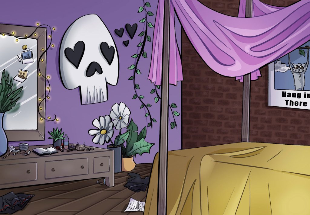 I’ve definitely grown since then, even though I still haven’t practiced as much as I probably should have over the years. I’m currently in a Digital Design class, and one of the assignments was to draw backgrounds for our characters and story that we created. At first, I was nervous as I always had a hard time making my backgrounds look cohesive with my characters- I’ve never really had a set drawing style that I was okay with until last semester, and I never ventured into drawing backgrounds with it. I read a tip online a few years back that suggested drawing the background first, so that when the characters were ultimately drawn, their interactions with/within the environment would look more natural. I had tried that suggestion before, but it was back when I wasn’t the best at anatomy- I struggled with placing my characters in the environment as a result.