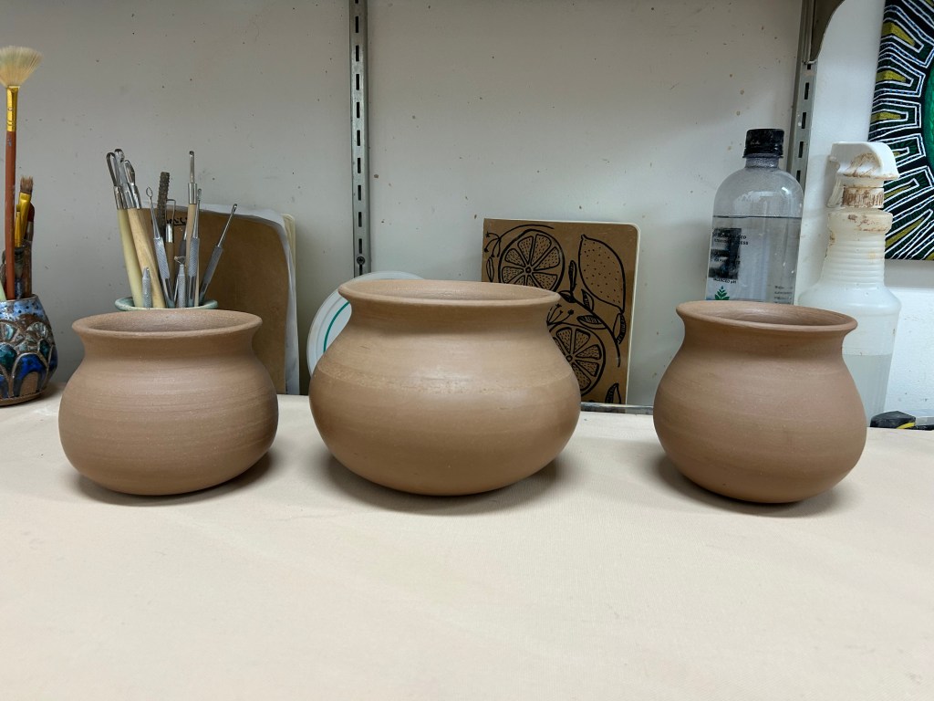 For these past 2 weeks, I’ve been working on some smaller projects. I made a goddess pendant, a drip coffee cup, three cauldrons, and two pomegranates. I had a lot of fun working on everything and getting back into throwing on the wheel.