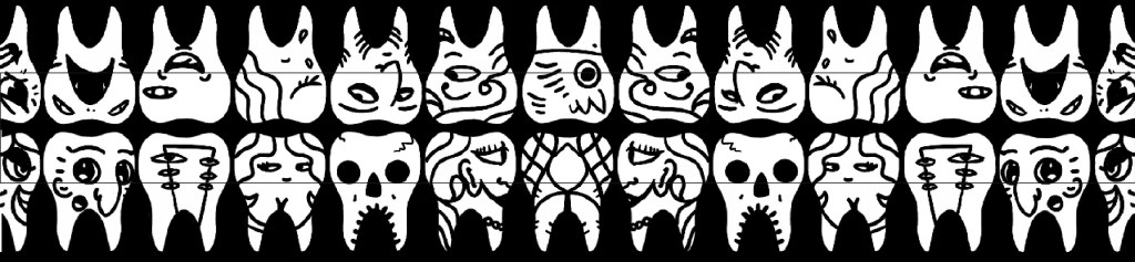 I started by illustrating some teeth as you’ll see below. This sounds bizarre but teeth have always been a pervasive theme in my life. I’ve enjoyed medical saga after medical saga involving my teeth for as long as I can remember due to a unique condition… I’m missing nearly all of my adult teeth! They just never grew in and I’ve lost only 6 baby teeth. So, I’m stuck with baby teeth that will continue to wear away until I have none anymore, but luckily, thanks to modern medicine, I will be able to receive implants I will likely never be able to afford! Regardless, that is why I can only imagine teeth come up as images in my art so frequently… they’re on my mind more than the average person I suppose.