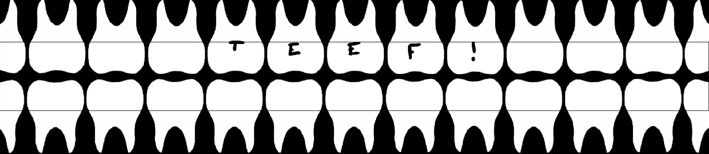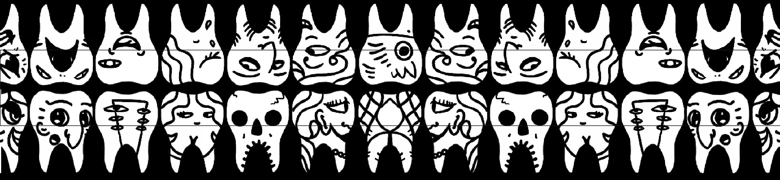 The next thing I wanted to do was add some sort of detail to the pattern in order to make capture the viewers more strongly. Initially I was going to illustrate the teeth to look like detailed versions of anatomical teeth, but then I had the idea of turn each tooth into some sort of tarot-card like design and began adding faces and to each one in hopes to give every individual tooth its own unique character. Overall I feel as though I succeeded! I also used a raster-based program (Procreate) because I did not have access to Illustrator during the creation of this project, so the alignment of each tooth had to be done by hand and eventually copied and pasted.