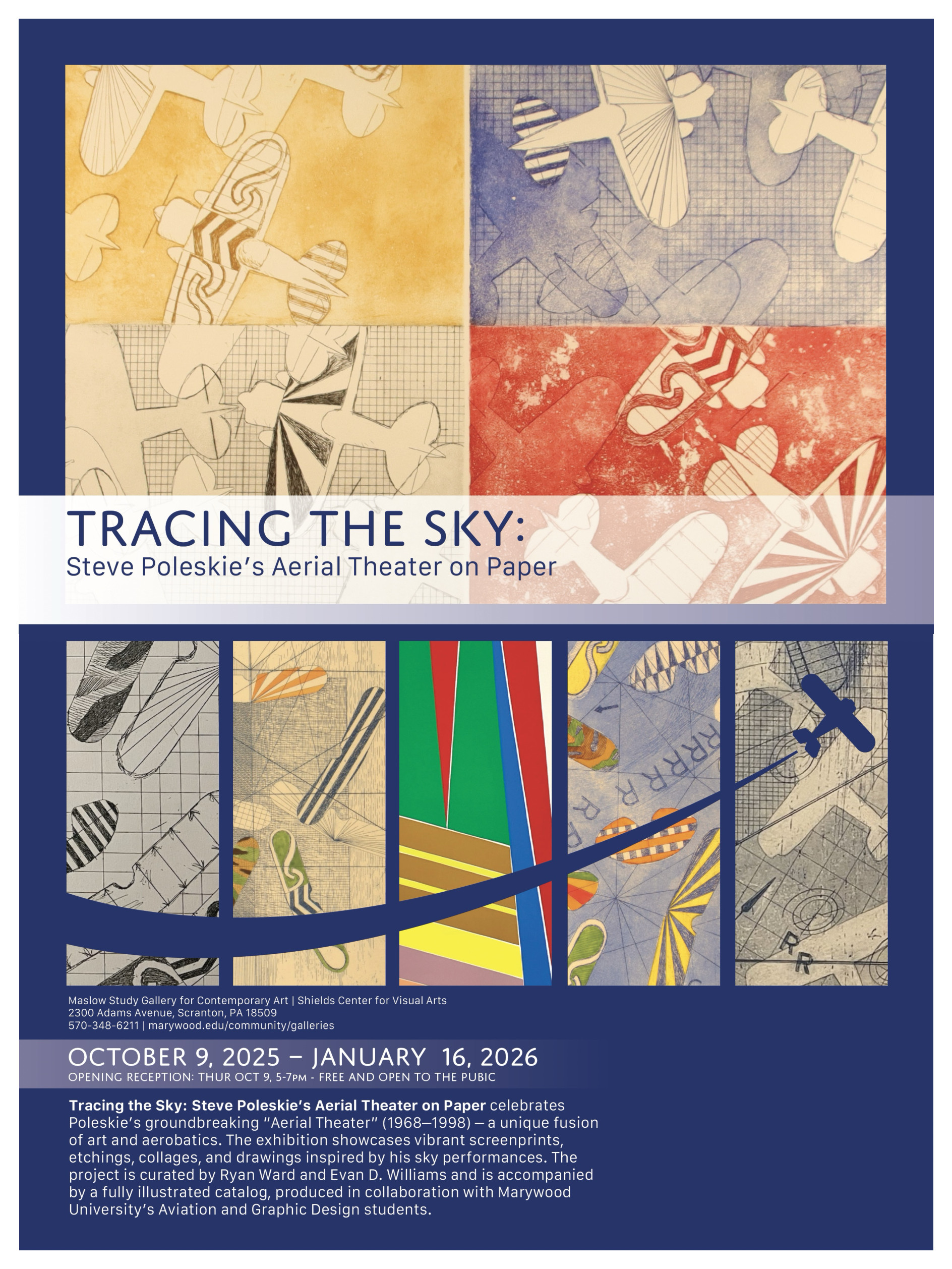 I highly recommend for anyone reading this to go visit “Tracing the sky: Steve Poleskie’s Aerial Theater on Paper” in the Maslow Study Gallery at Maywood.