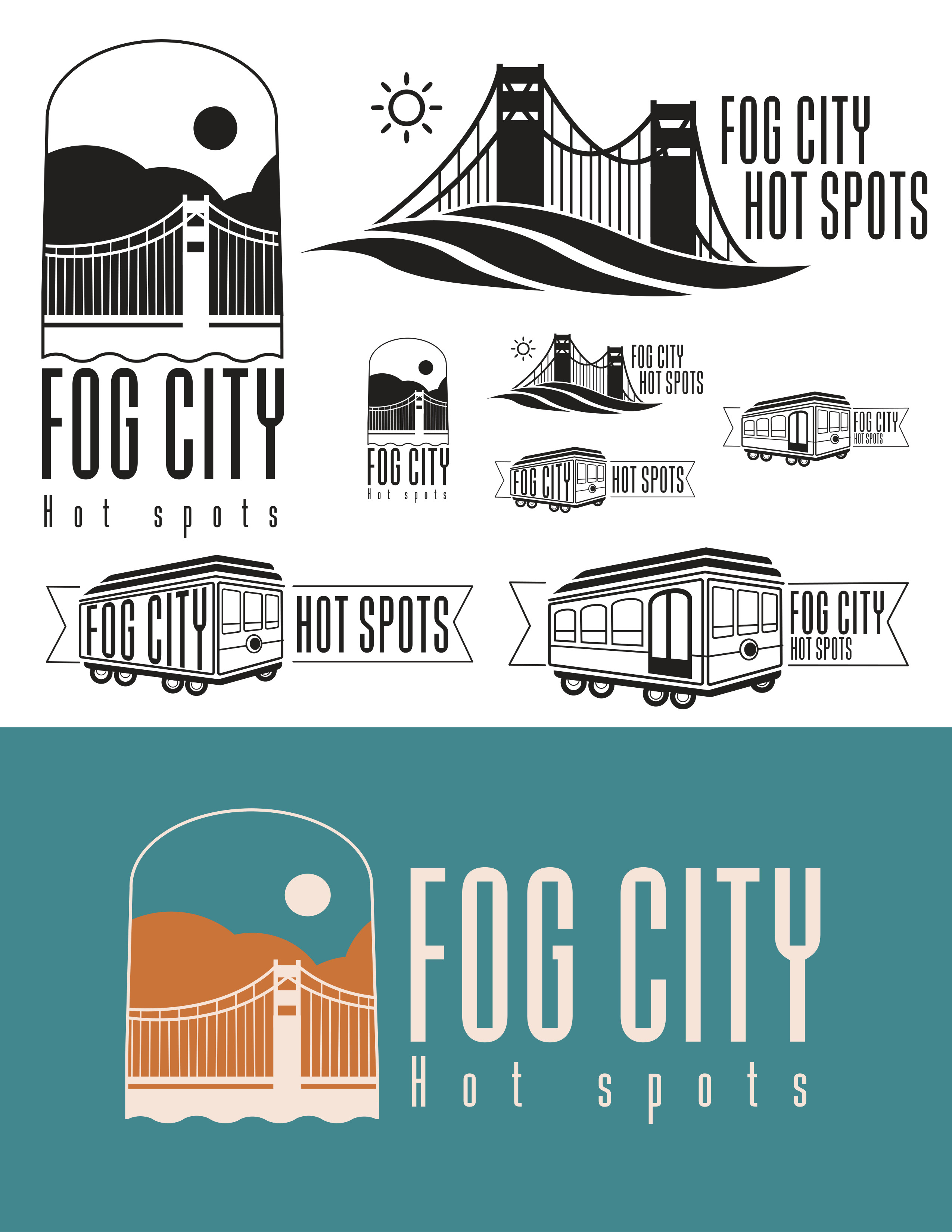 So in the past month or so I’ve designed three main logos for my classes, and I’ve done a fun exercise for design logos as well. To start, in my Web Design and Interactive Media class with Professor Sue Jenkins we were tasked with coming up with a logo for a site that we would be mocking up. The site would be a San Fransisco Travel website that would provide information about events and places to go for people interested in visiting the city. I came up with four options for the logo, two of them were focused around the classic golden gate bridge imagery and the other two were playing around with the shape of a cable car. In the end I really did love all of the designs but the ones with the bridge had a bit more impact than the cable car ideas. There designs just had more impact because of how I balanced the positive and negative space in each of them. And between the two bridge logos I appreciated the one with the curved border more, but I was concerned about how it would scale. So I ended up rearranging the type so that it would be easier to read on a smaller scale.