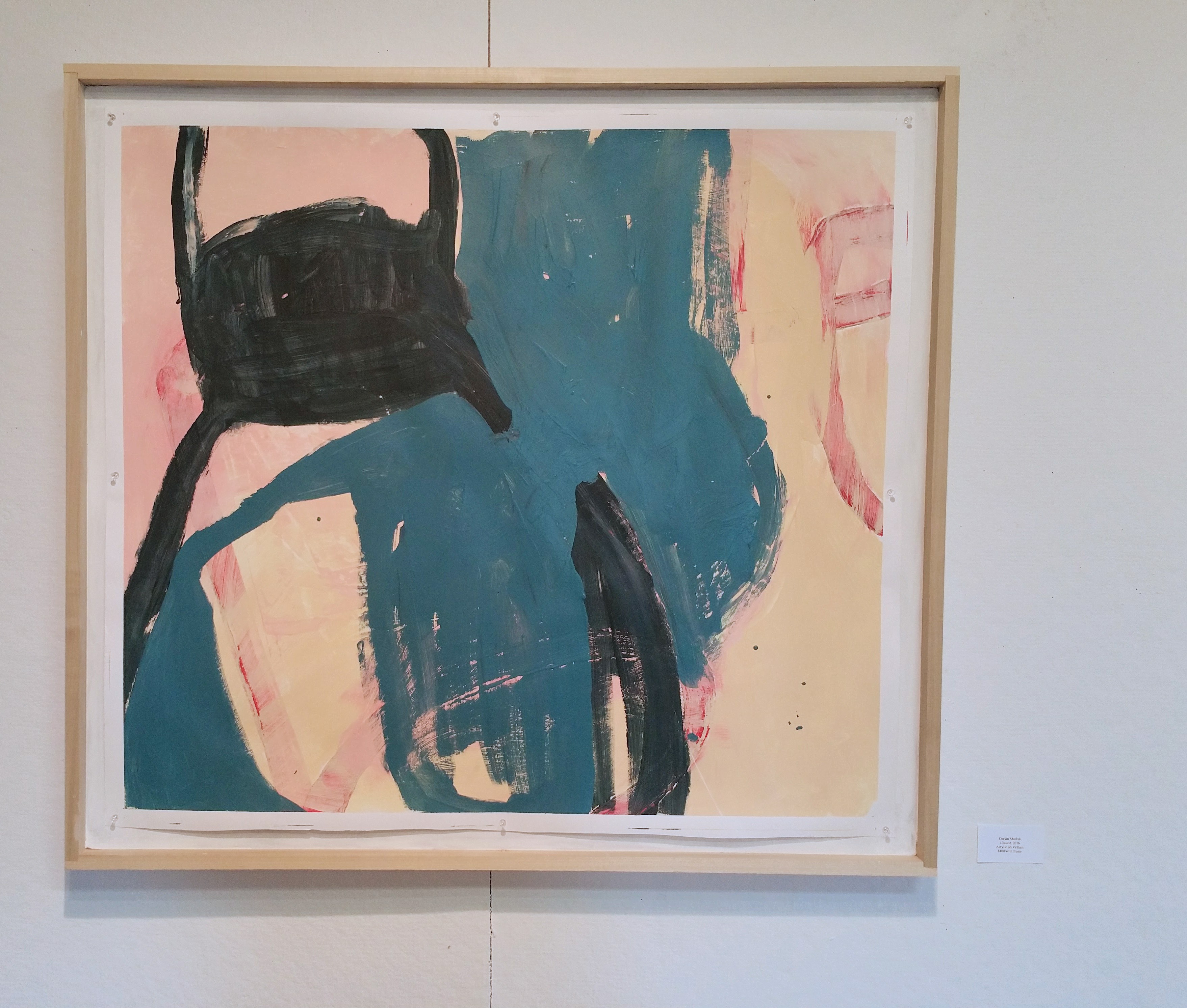 Before my Senior Show I was nervous about the questions I would be receiving from friends and family. Talking about your own work is hard enough but it is even more challenging when the viewer does not have a certain level of experience with the type of work you create. My paintings are non representational so when some people don’t know how to look at these things and they ask questions like “what is it?” or “why do you paint like this?” It is difficult to answer these questions but the key is patience. I think it is important to hear and see how the viewer looks at your work, as painful, awkward or exciting it can be at times. Overall the show was a great experience and I am so pleased with how my work looks out of the studio.
