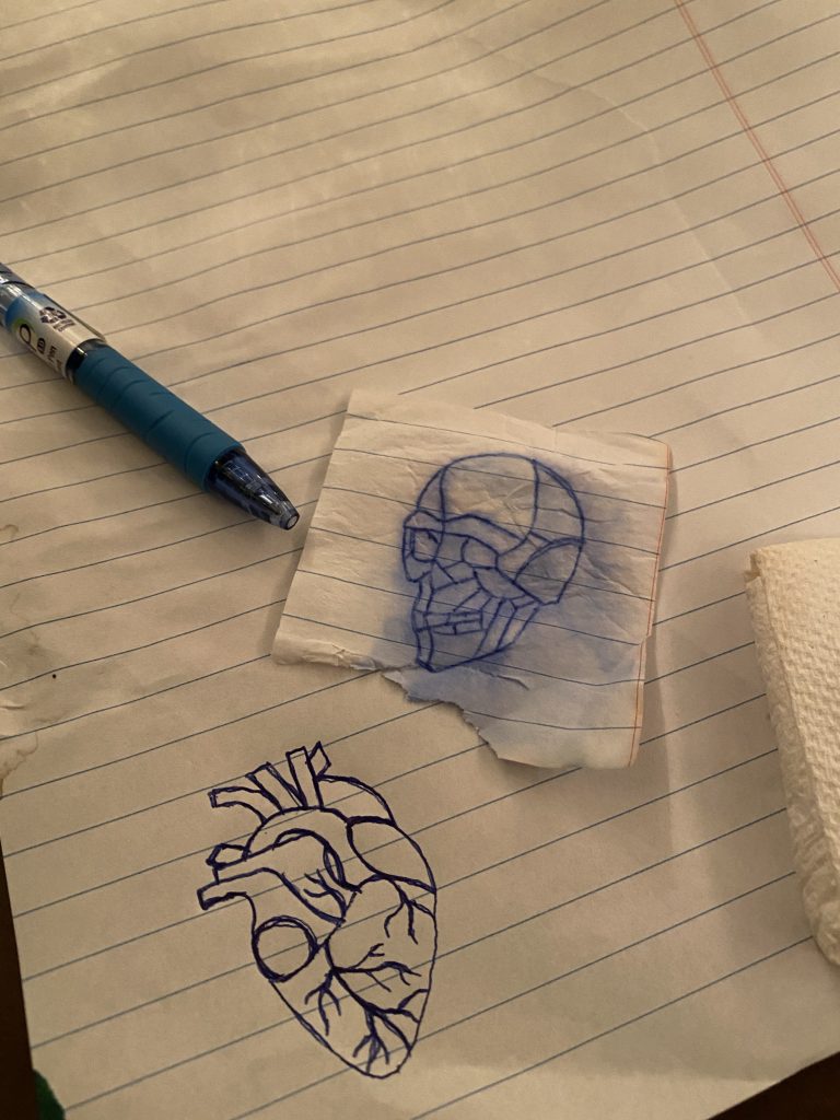 With school lingering, mortality on the mind, and an overarching dissociative state, I picked up the tattoo gun and successfully gave 5 tattoos (two of which were on myself) and received 2 in the span of about a week.