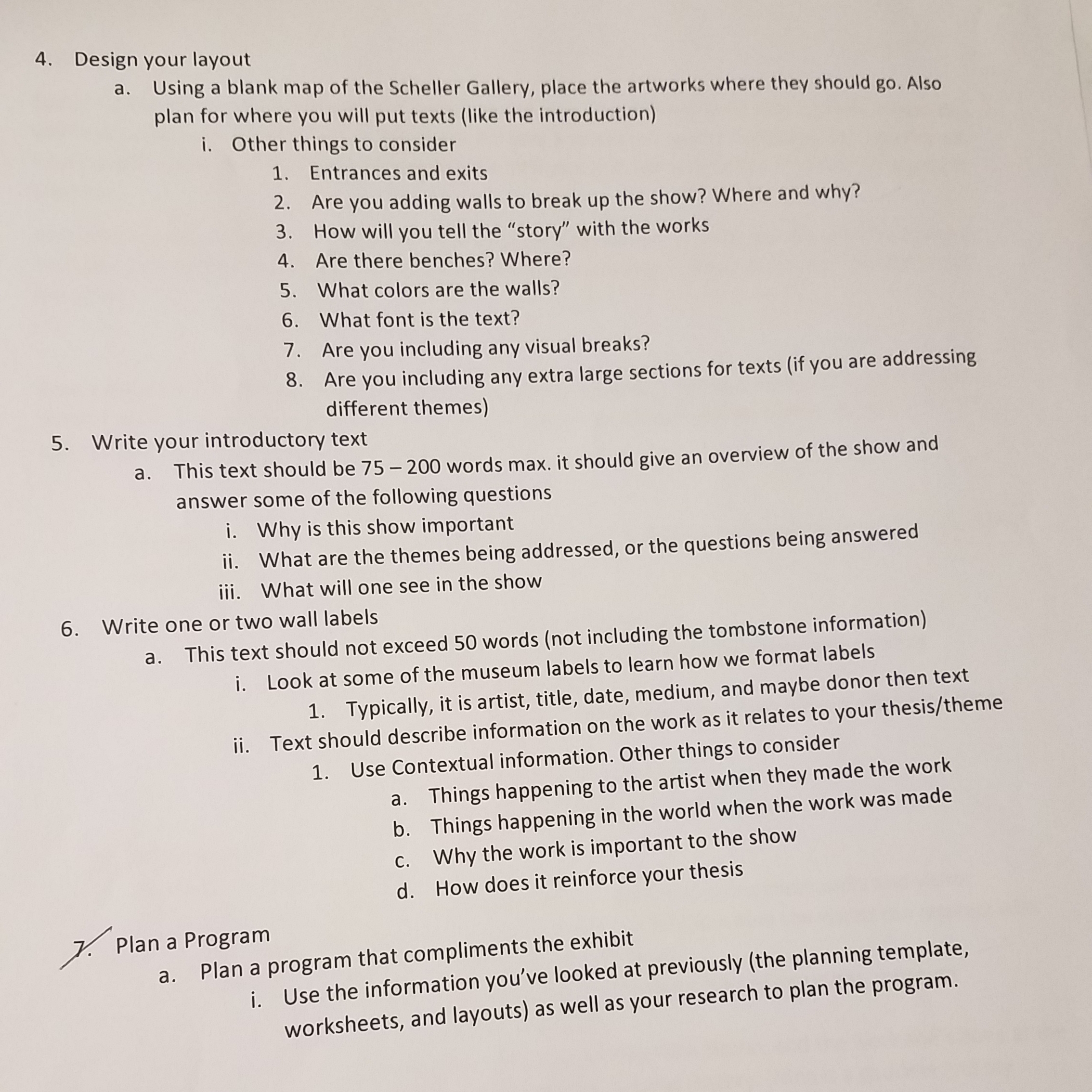 For my last couple of weeks at my summer internship at the Allentown Art Museum, I was given a project to create an exhibition that would go up in the Scheller Gallery, which is a very big gallery. I had to choose one work from our collection and then up to twenty other works of art that did not have to be in our collection. Here is what I had to do: