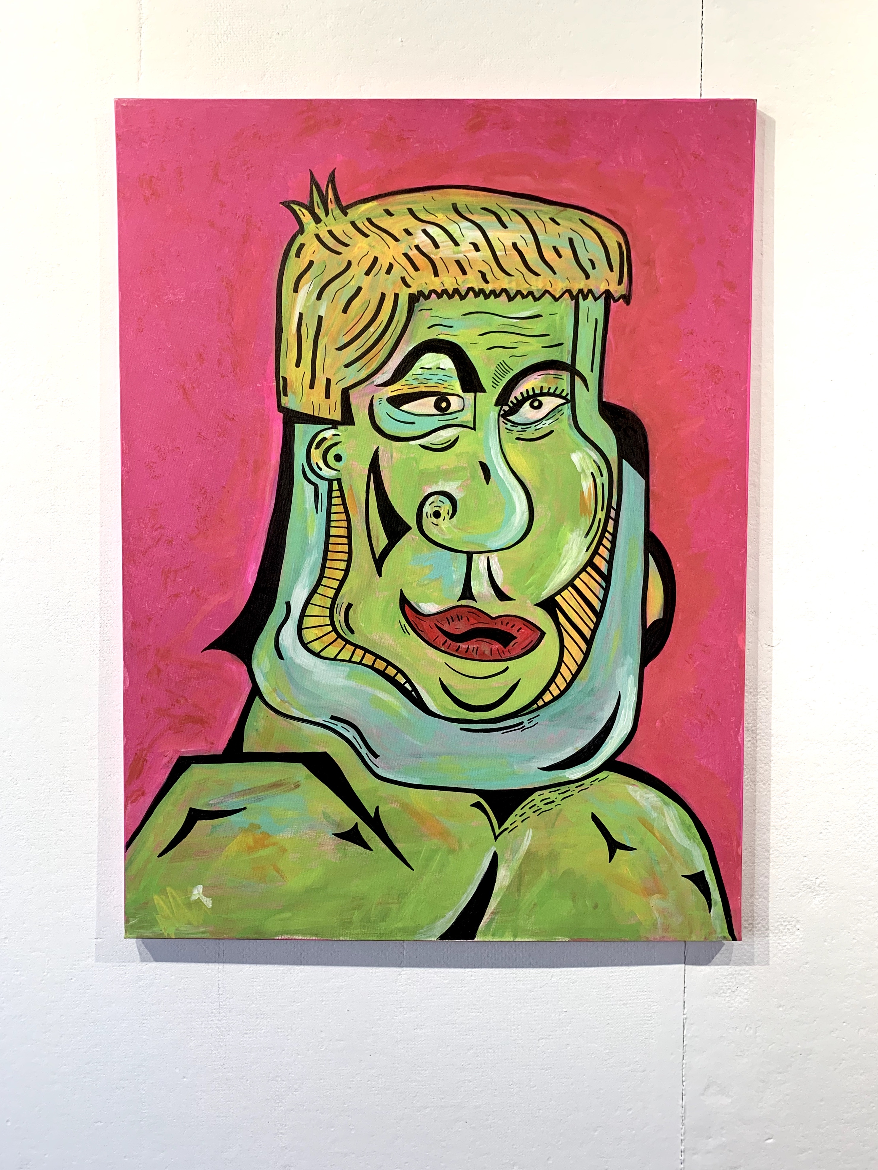 Matt believes that he is just painting scenes from his everyday life. It’s not what the artist creates, it’s how it’s created. Matt tries to paint common scenes of modern society in ways that are conflicting to the viewers. The scene may be recognizable and familiar but how the figures look, the colors, and the feeling given to that scene is new. It is up to the viewers to decide if the painting is hiding a deeper message. The message of the show is not to take life so seriously. Laugh and be able to laugh with others. So please come and enjoy the show “Face Reality”.
