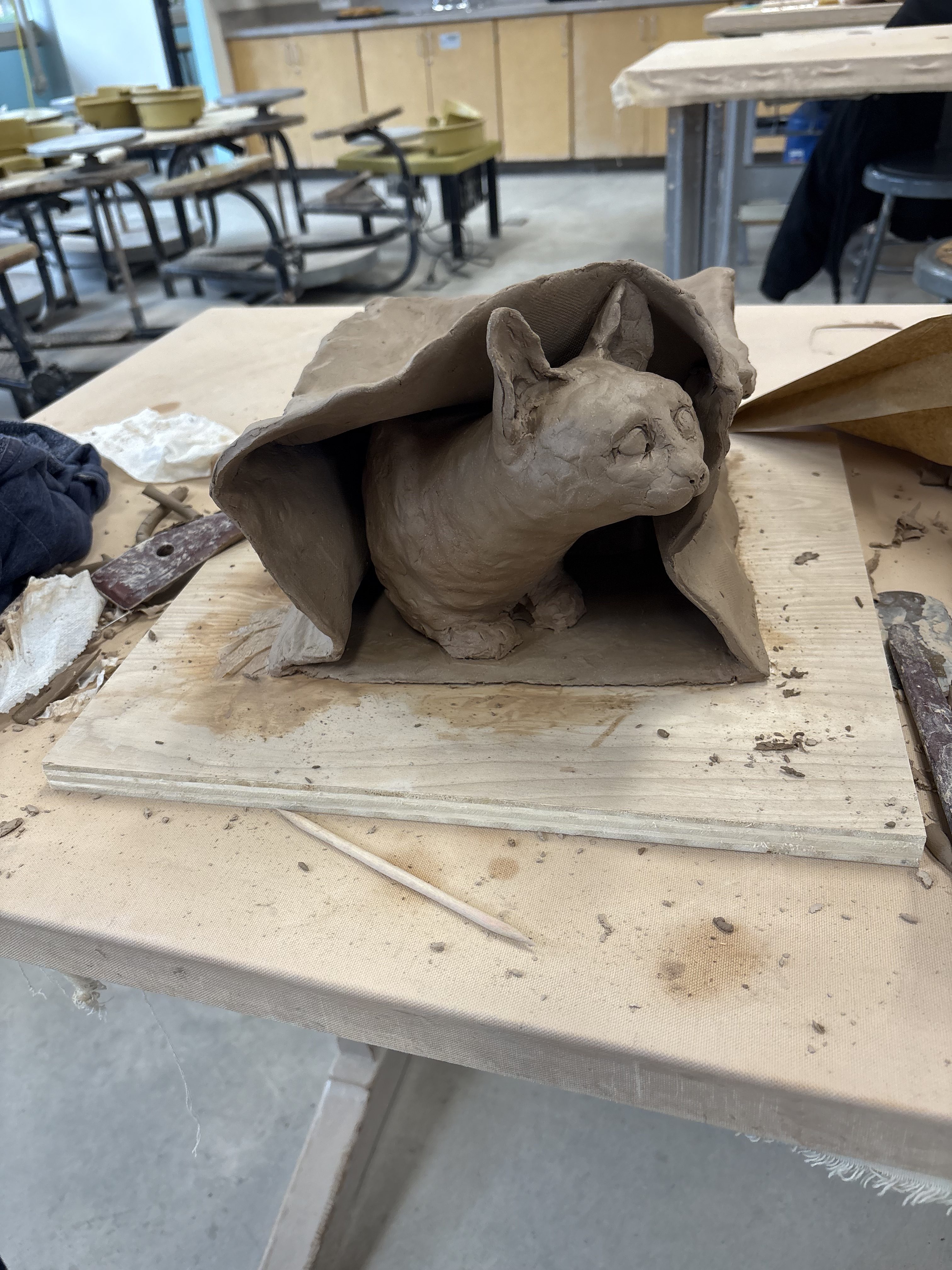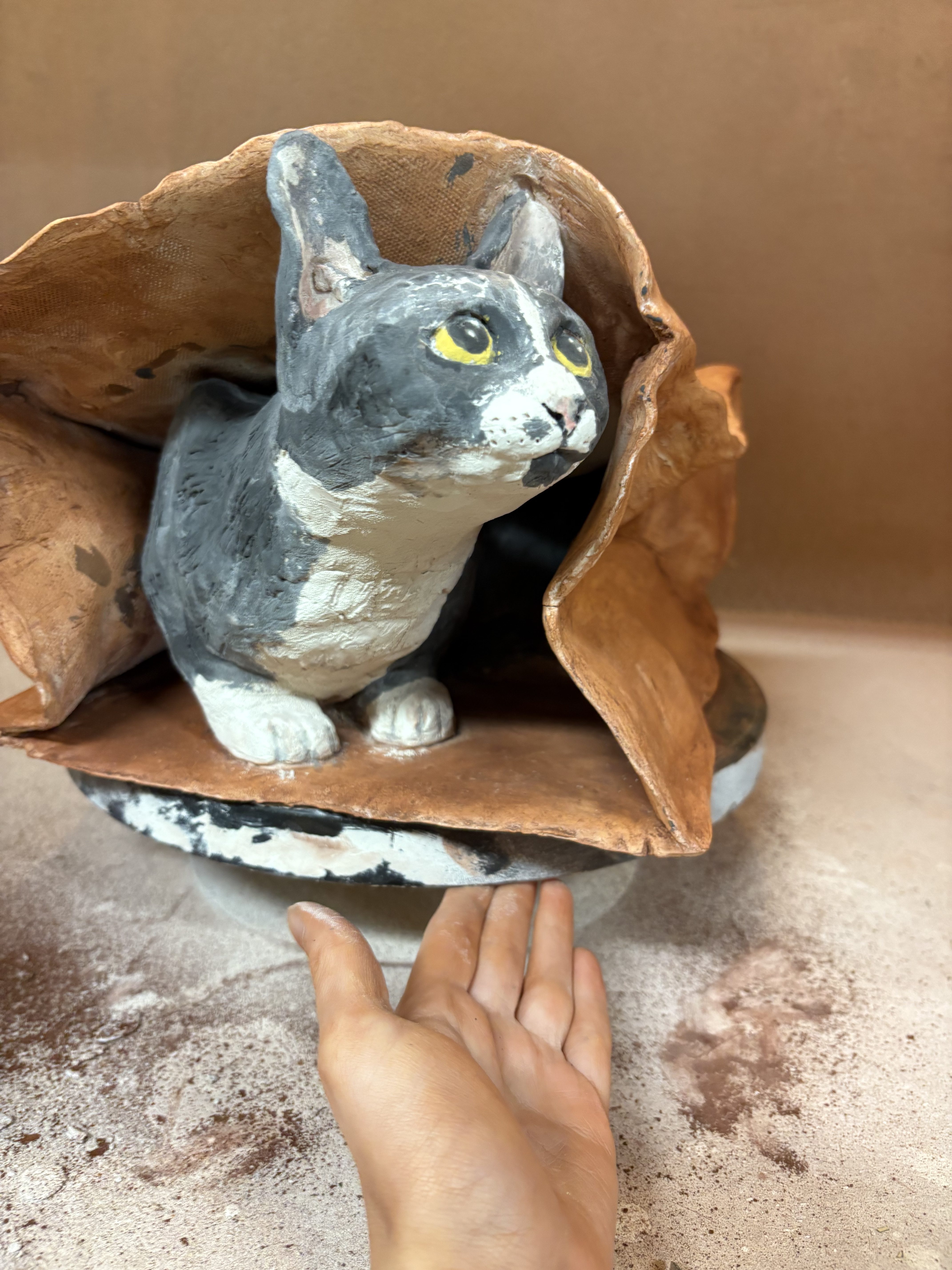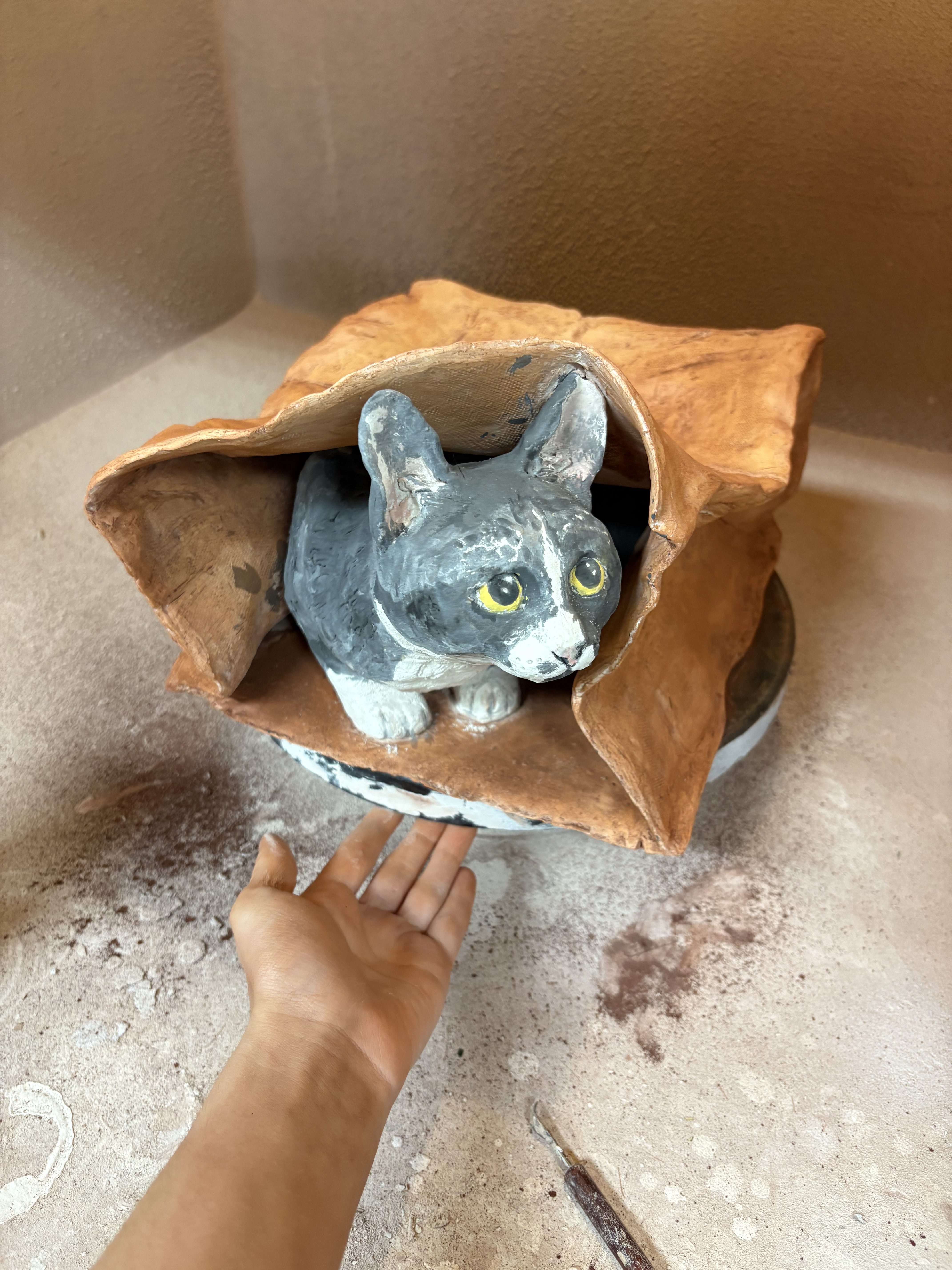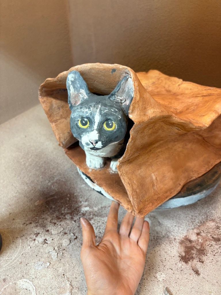 This semester has certainly been a doozy. I feel like I might fade away. I just finished a piece in clay that likely won’t be fired until next semester (spring 2026). I’ll show progress on that piece and detail all my design decisions that went into it, and I’ll also show my finished kitty piece with a few more progress pictures I hadn’t already shared.