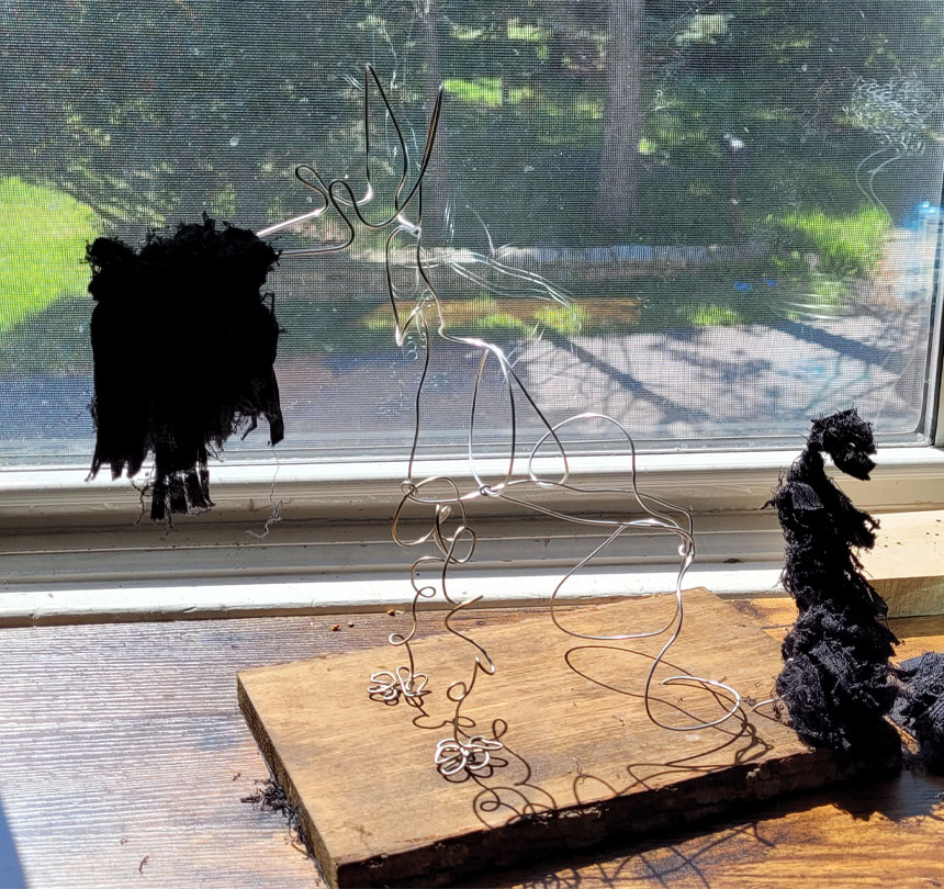 I tied the small bits of fabric to the wire figure and was pleasantly surprised when the fabric did not weigh the body down.