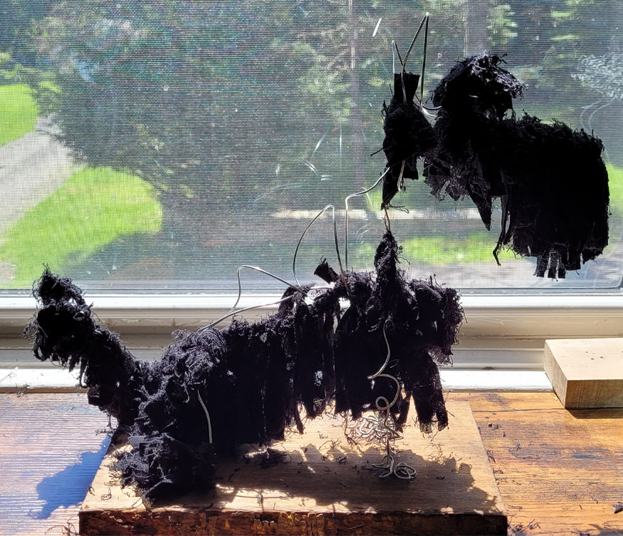 Hello! It was a good week and I was able to give my father his gift so, as promised, the rest of my project from last week. I made a wire and fabric Scottish Terrier. The coil that I had left myself ended up being a perfect amount of wire to finish off the inner form of the dog. It looked very silly at first but I was confident I left myself the room I needed to create the shape I had in mind.